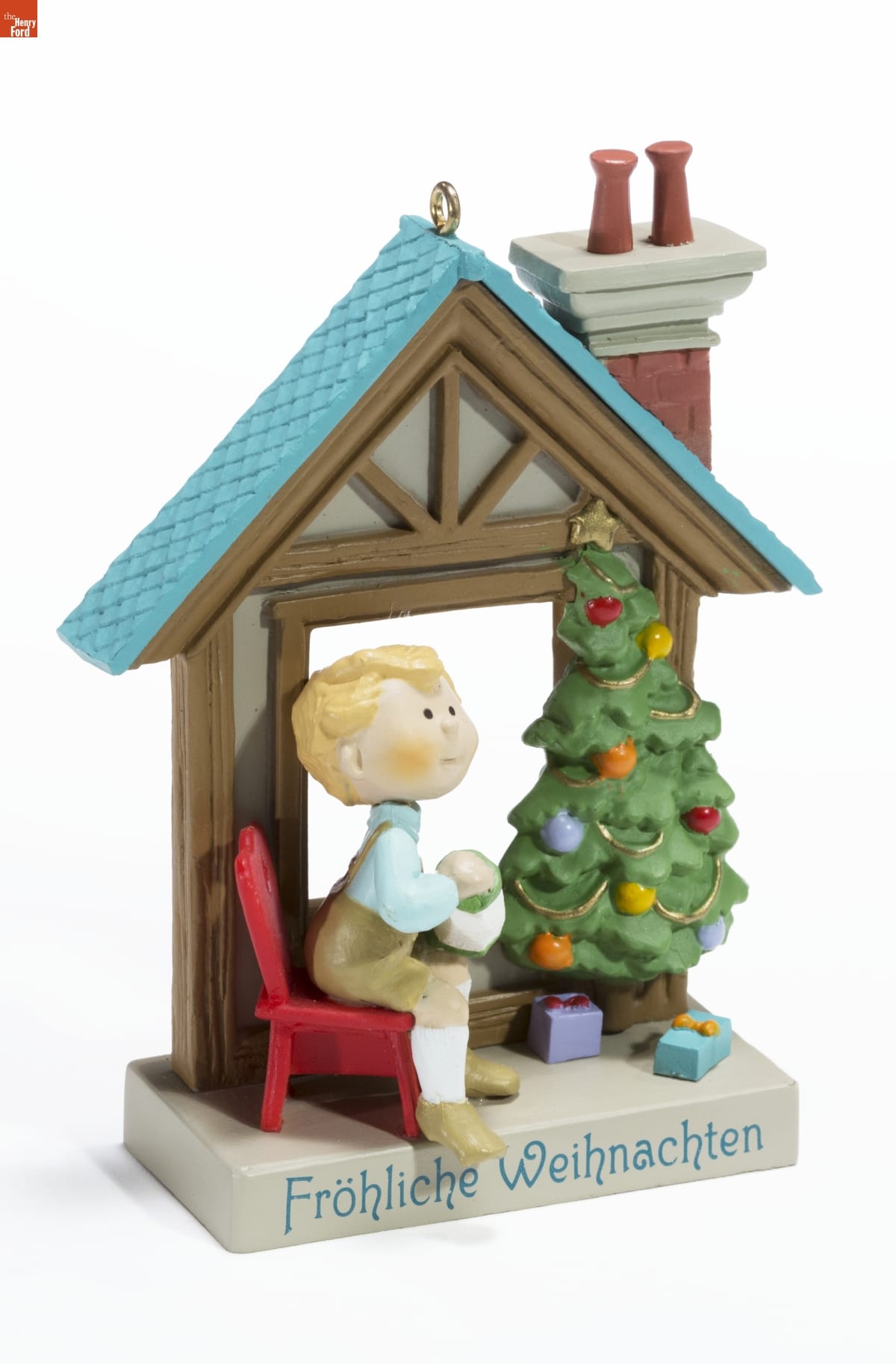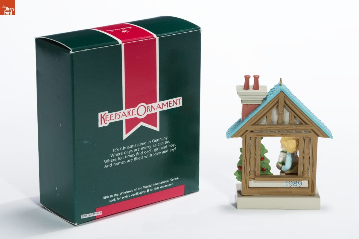 KEEPSAKE ORNAMENT / It's Christmastime in Germany / Where days are merry as can be. / Where fun times find each girl and boy. / And homes are filled with love and joy! / Fifth in the Windows of the World International Series. / Look for series verification 5 on this ornament.