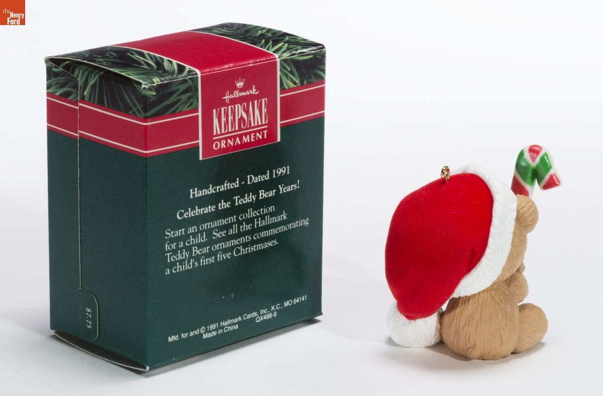 Hallmark / KEEPSAKE / ORNAMENT / Handcrafted - Dated 1991 / Celebrate the Teddy Bear Years! / Start an ornament collection / for a child. See all the Hallmark / Teddy Bear ornaments commemorating / a child's first five Christmases. / Mfd. for and (C) 1991 Hallmark Cards, Inc., K.C., MO 64141 / Made in China QX488-9