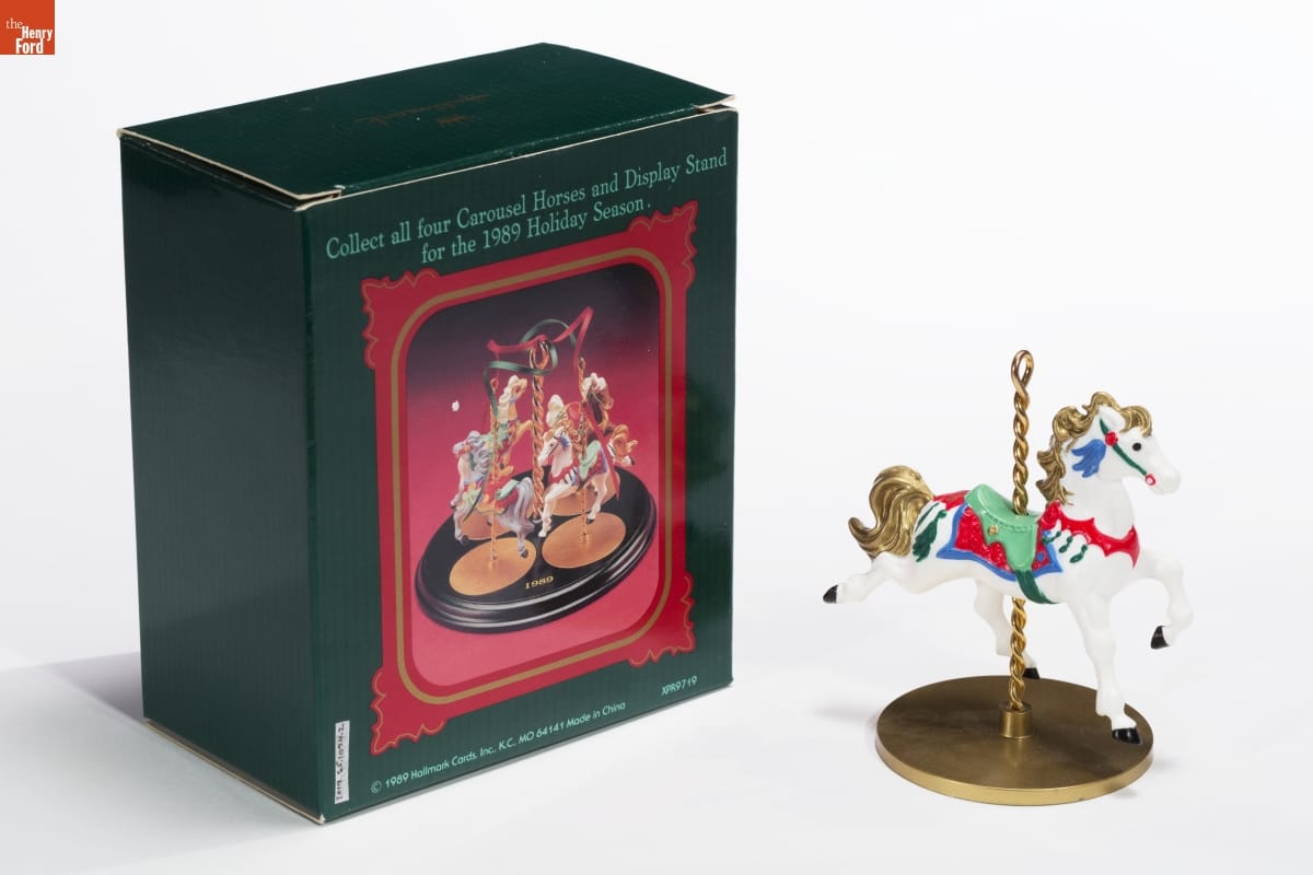Collect all four Carousel Horses and Display Stand / for the 1989 Holiday Season. / (c) Hallmark Cards, Inc., K.C., MO 64141 Made in China XPR9719