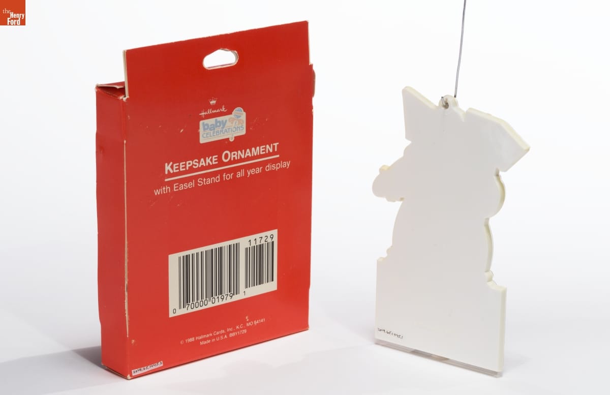 Hallmark / baby / CELEBRATIONS / KEEPSAKE ORNAMENT / with Easel Stand for all year display / 11729 / 0 70000 01979 1 / (c) 1988 Hallmark Cards, Inc., K.C., MO 64141 / Made in U.S.A. BBY1729
