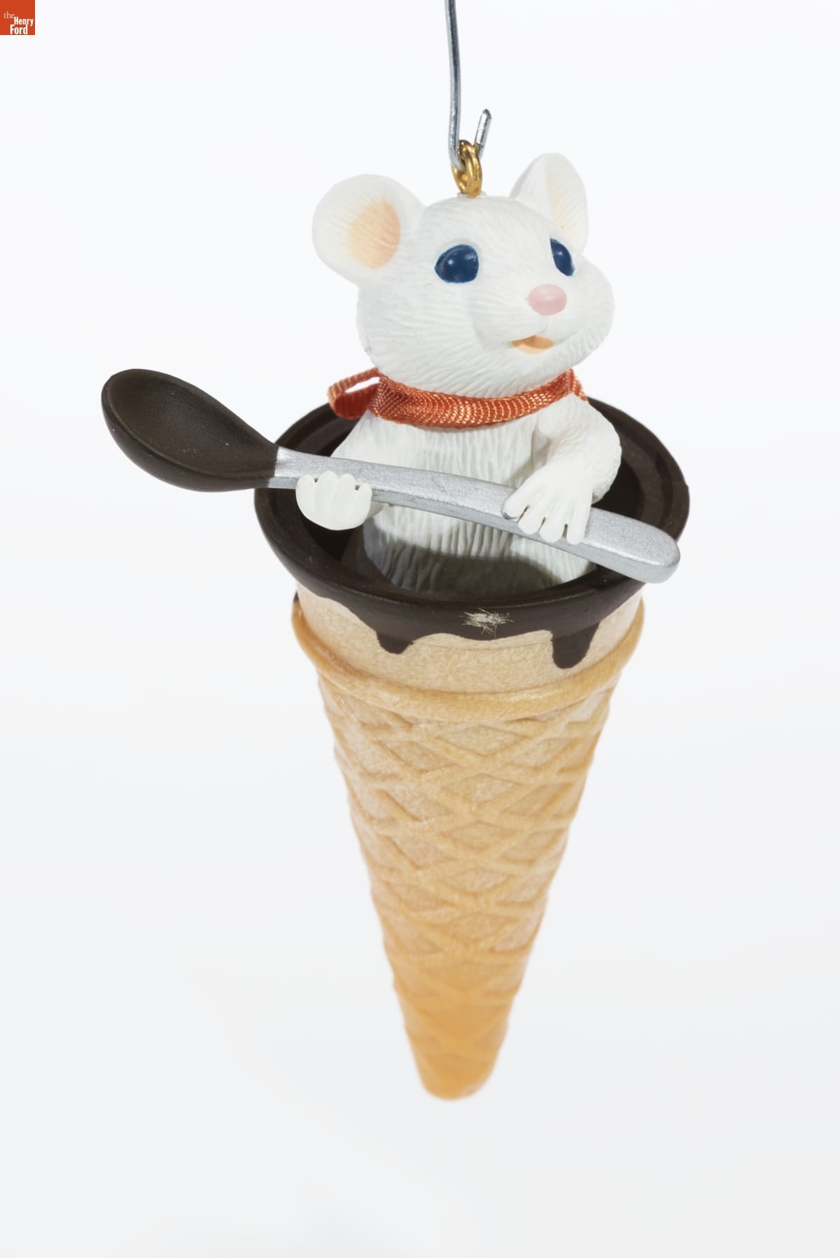 Keepsake Ornament / This hungry mouse / finds there's no stopping / His appetite / for hot-fudge topping!