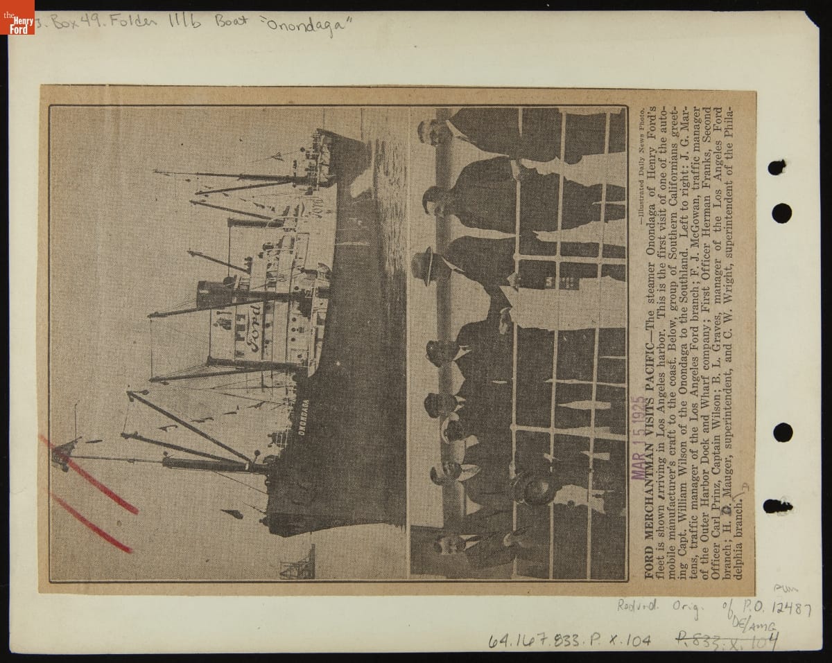 Southern Californian Merchantmen aboard Ford Freighter "Onondaga" in Los Angeles Harbor, March 15, 1925