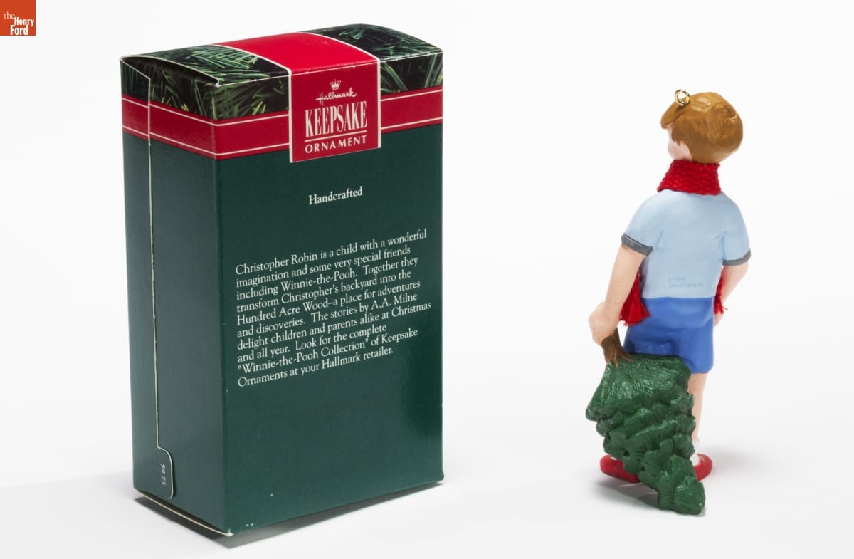 Hallmark / KEEPSAKE / ORNAMENT / Handcrafted / Christopher Robin is a child with a wonderful / imagination and some very special friends / including Winnie-the-Pooh. Together they / transform Christopher's backyard into the / Hundred Acre Wood - a place for adventures / and discoveries. The stories by A.A. Milne / delight children and parents alike at Christmas / and all year. Look for the complete / "Winnie-the-Pooh Collection" of Keepsake / Ornaments at your Hallmark retailer.