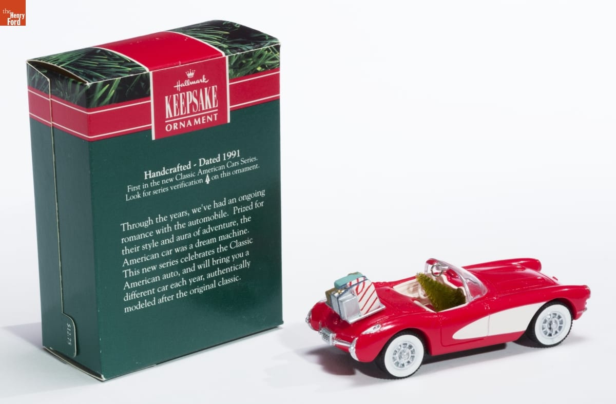 Hallmark / KEEPSAKE / ORNAMENT / Handcrafted - Dated 1991 / First in the Classic American Cars Series. / Look for series verification 1 on this ornament. / Through the years, we've had an ongoing / romance with the automobile. Prized for / their style and aura of adventure, the / American car was a dream machine. / This new series celebrates the Classic / American auto, and will bring you a / different car each year, authentically / modeled after the original classic.