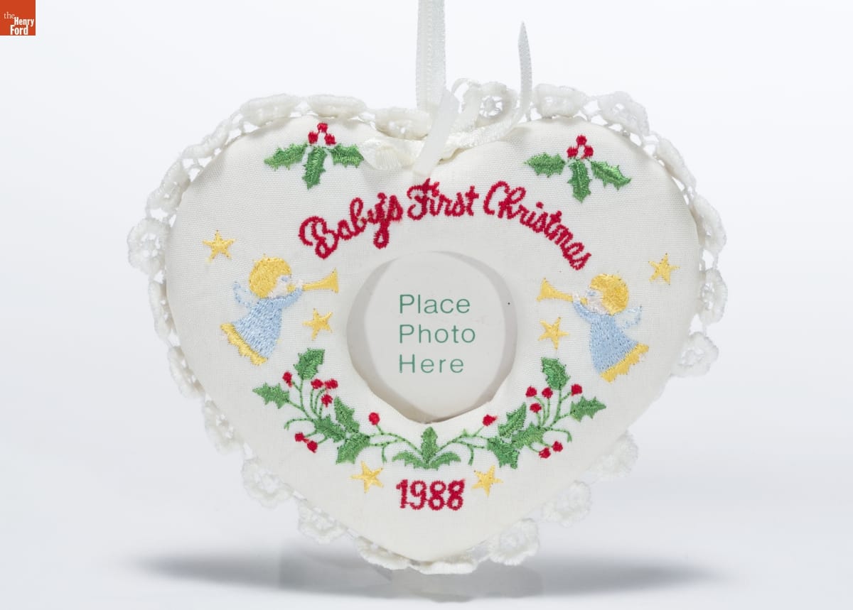 Baby's First Christmas / FABRIC PHOTOHOLDER ORNAMENT - DATED 1988
