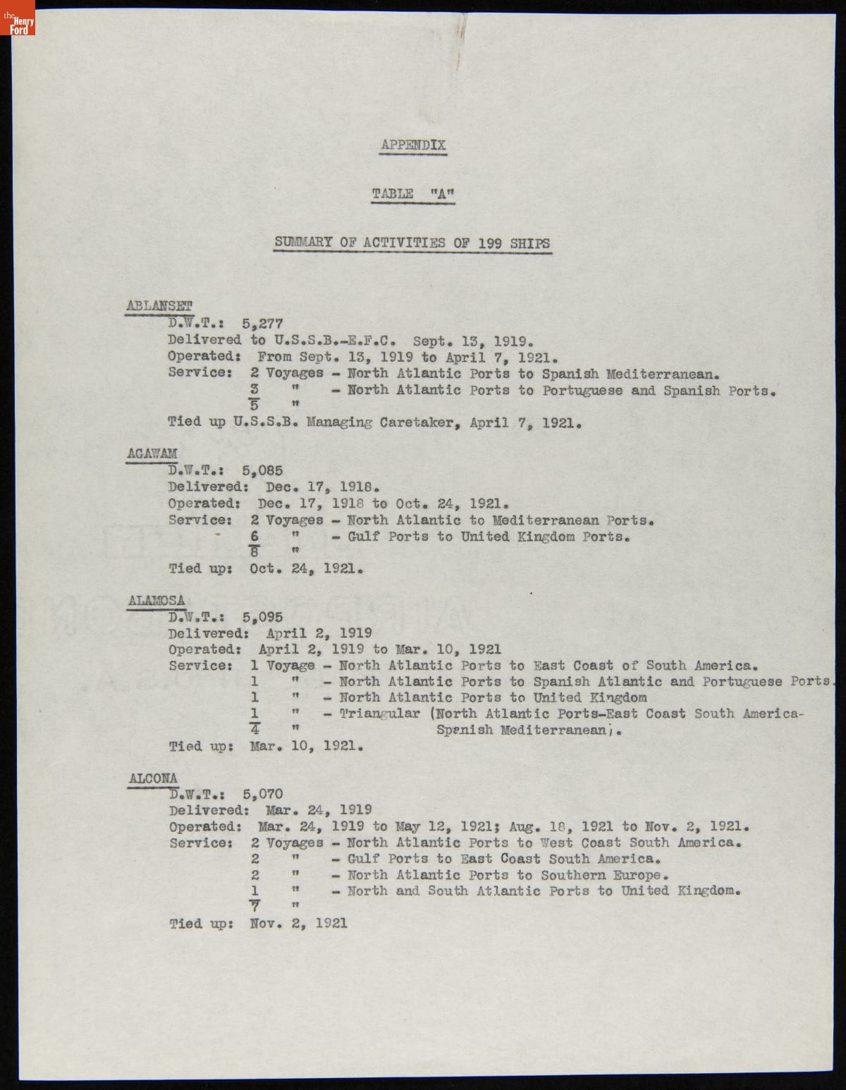 Summary of Activity for 199 Ships Purchased for the Ford Ship Salvage Program, 1926