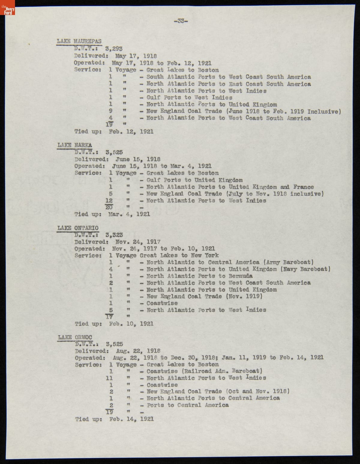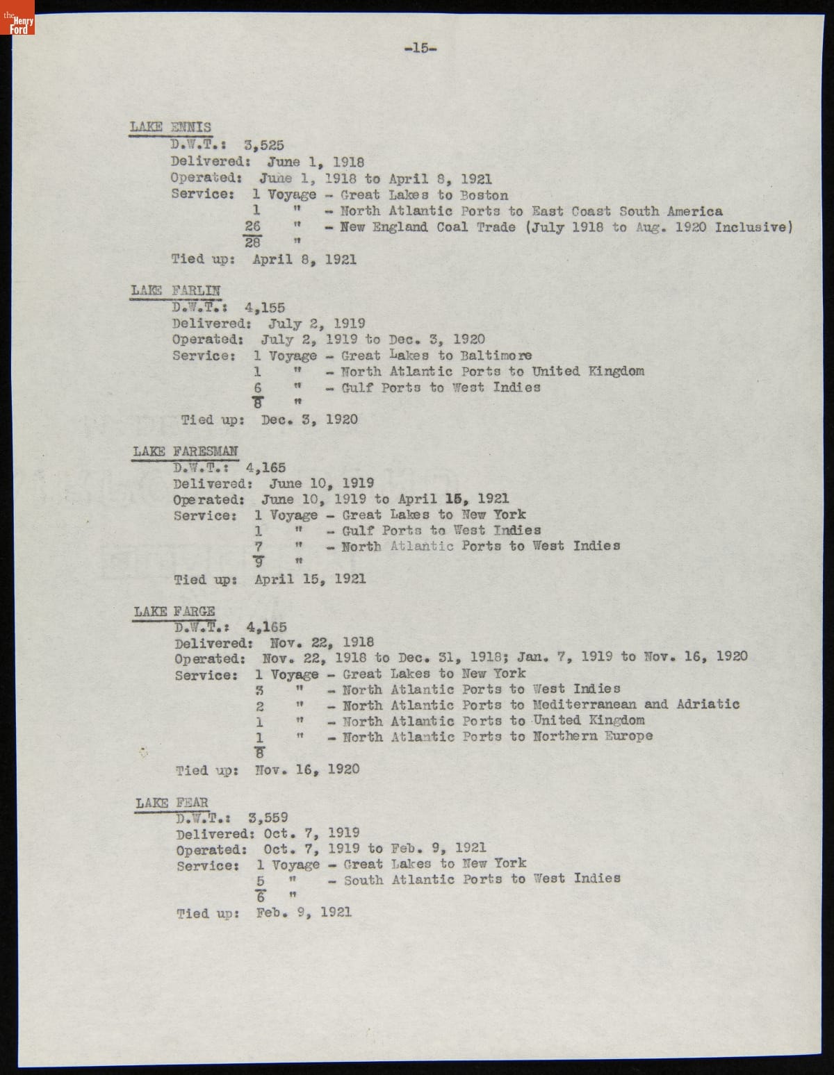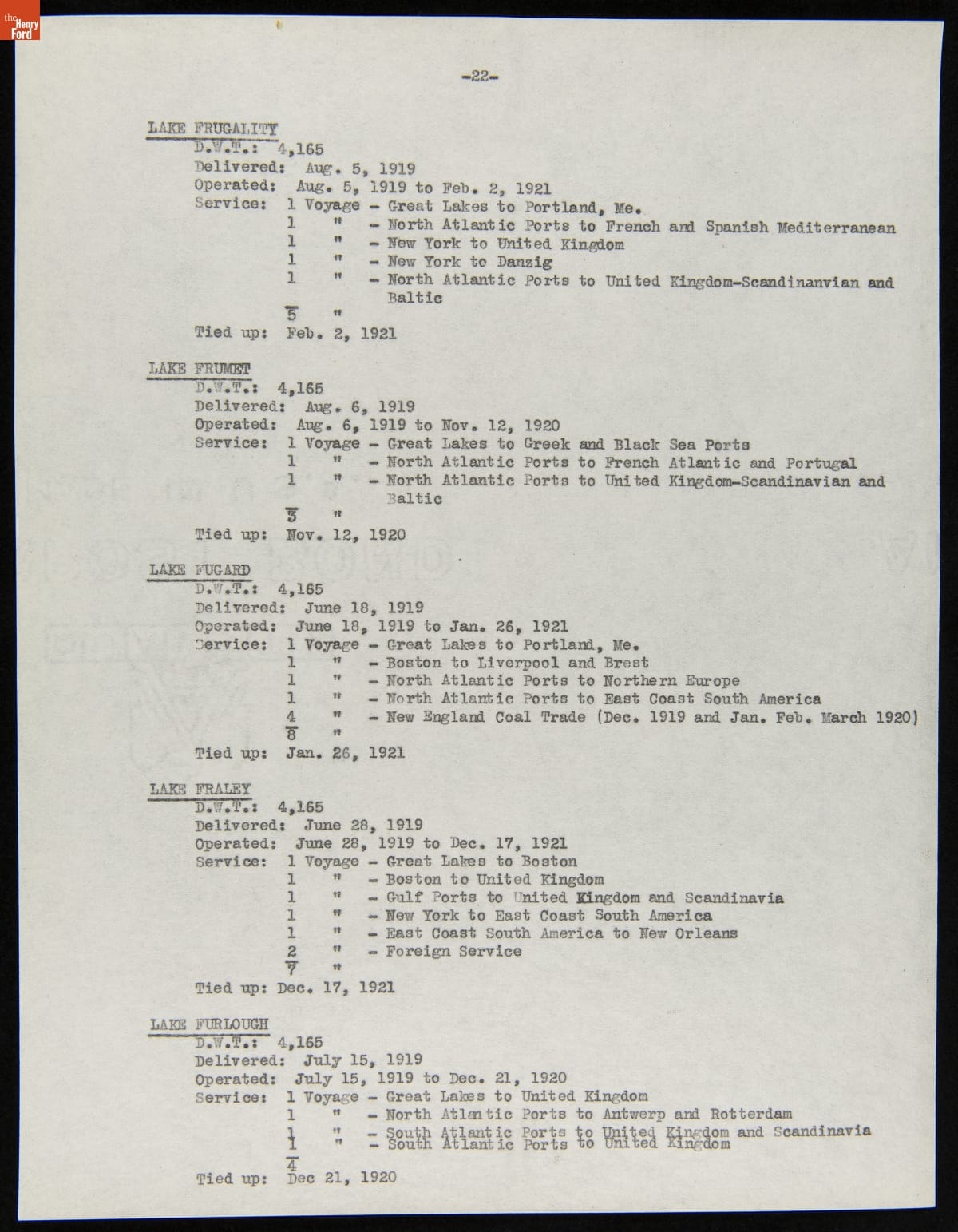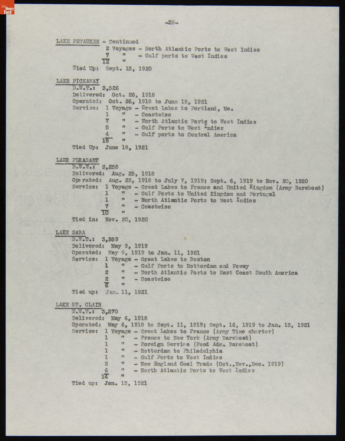 Henry Ford purchased 199 surplus World War I merchant ships from the United States government in 1925. Many of these ships were towed to Ford's River Rouge Plant and dismantled -- their steel, metal, and salvageable parts were recycled. The other vessels were refurbished or converted to help transport raw materials and finished products as part of Ford's operations.