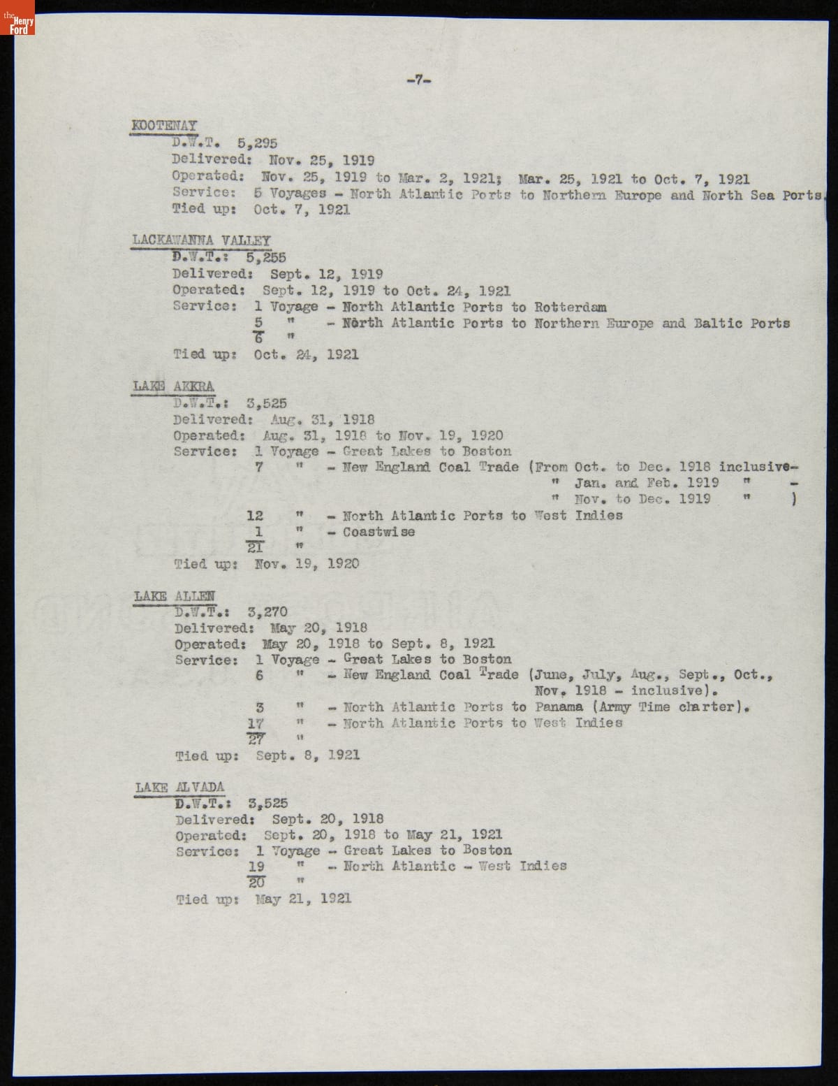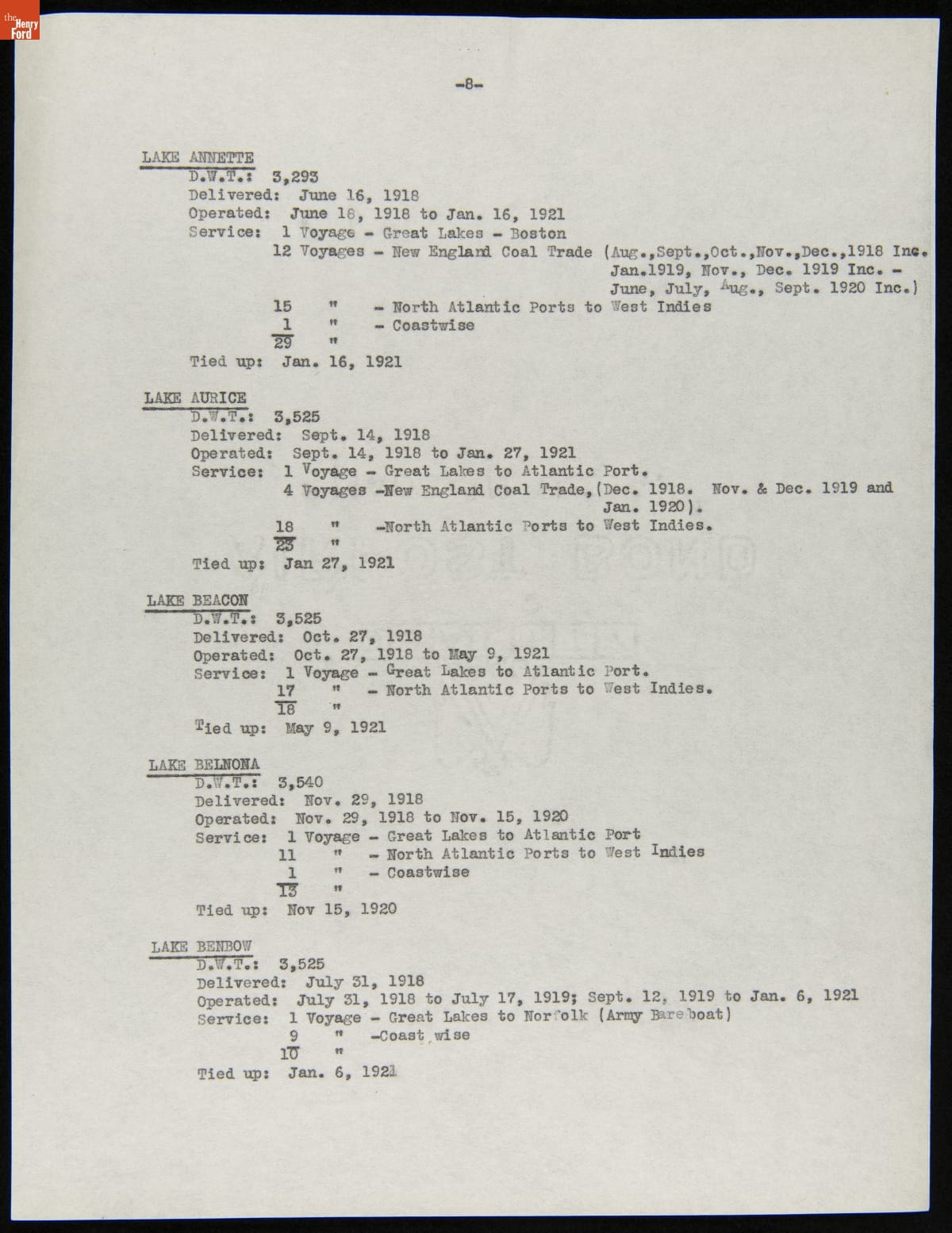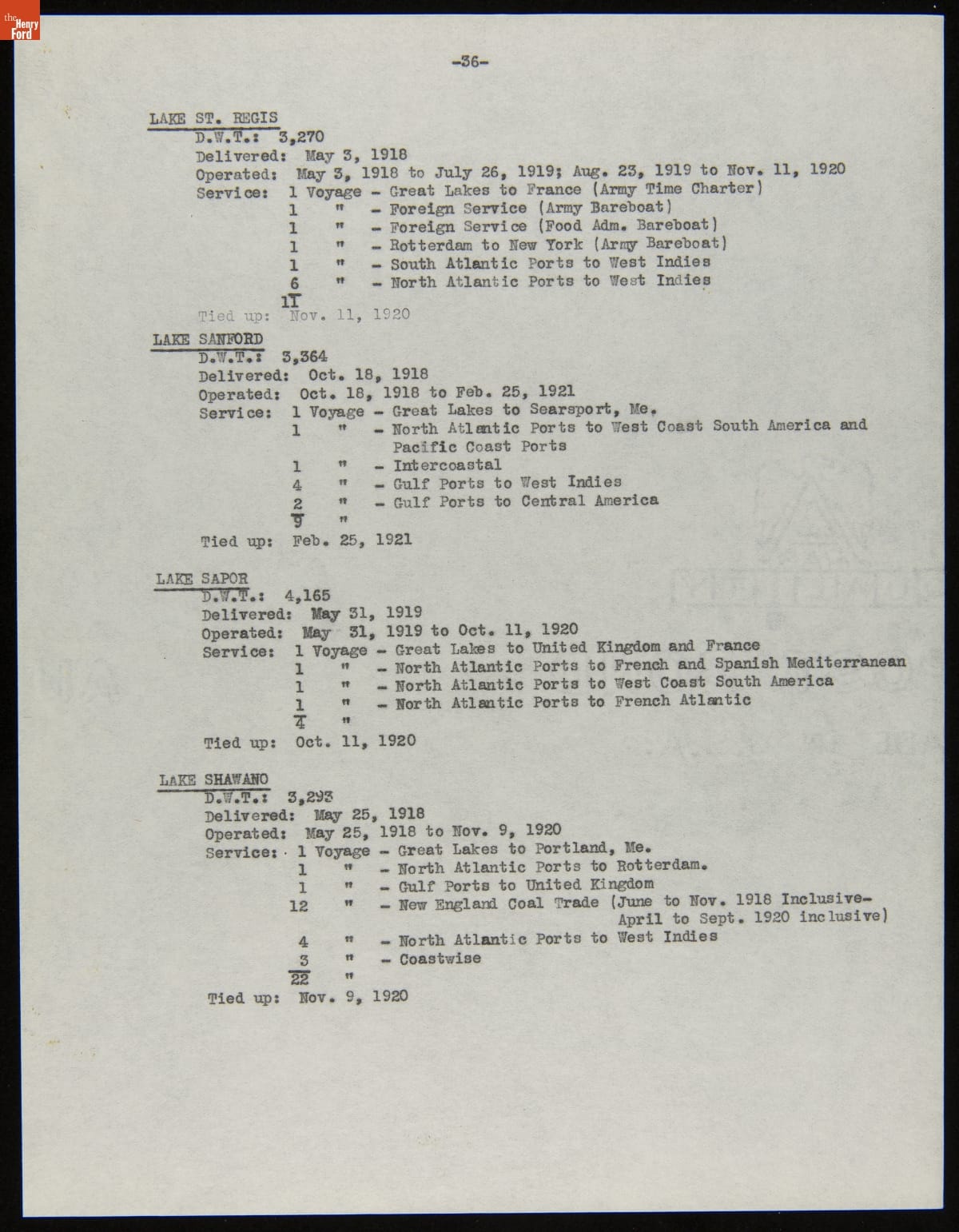 Henry Ford purchased 199 surplus World War I merchant ships from the United States government in 1925. Many of these ships were towed to Ford's River Rouge Plant and dismantled -- their steel, metal, and salvageable parts were recycled. The other vessels were refurbished or converted to help transport raw materials and finished products as part of Ford's operations.
