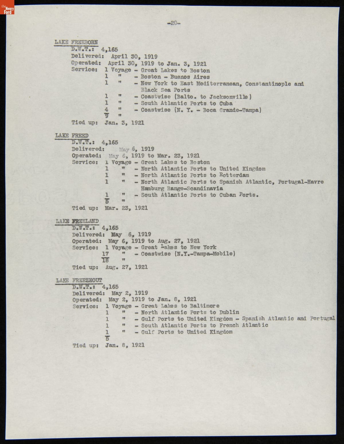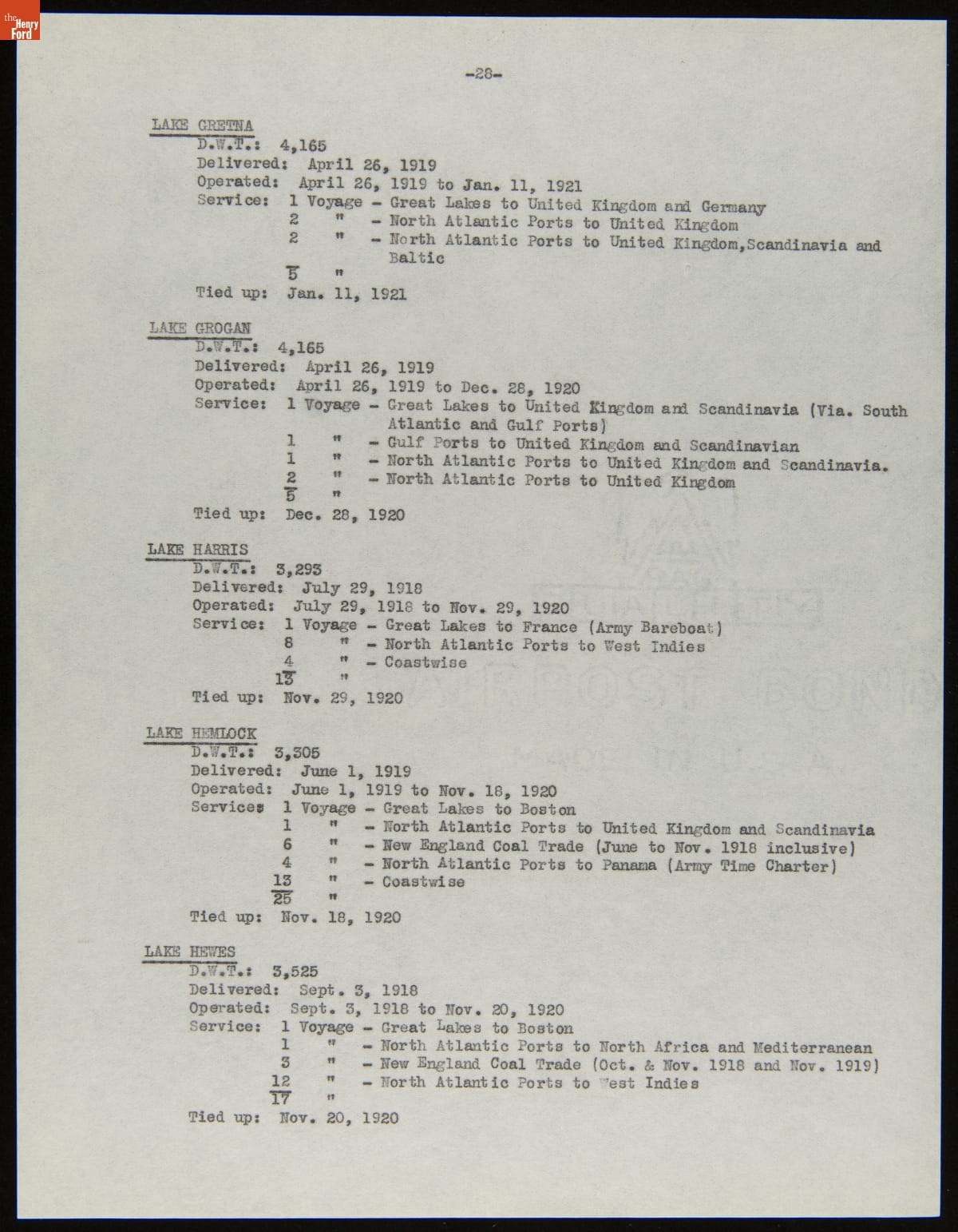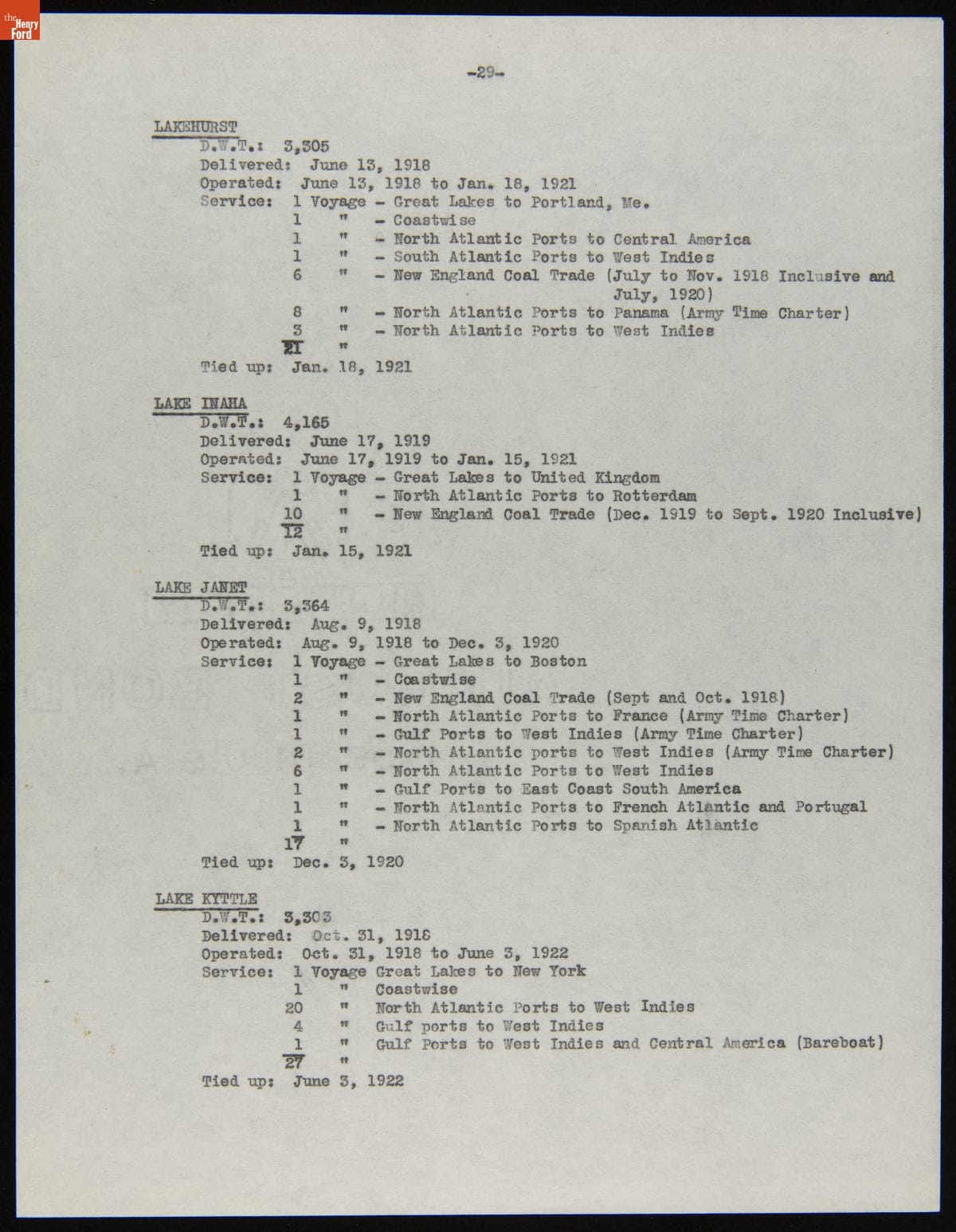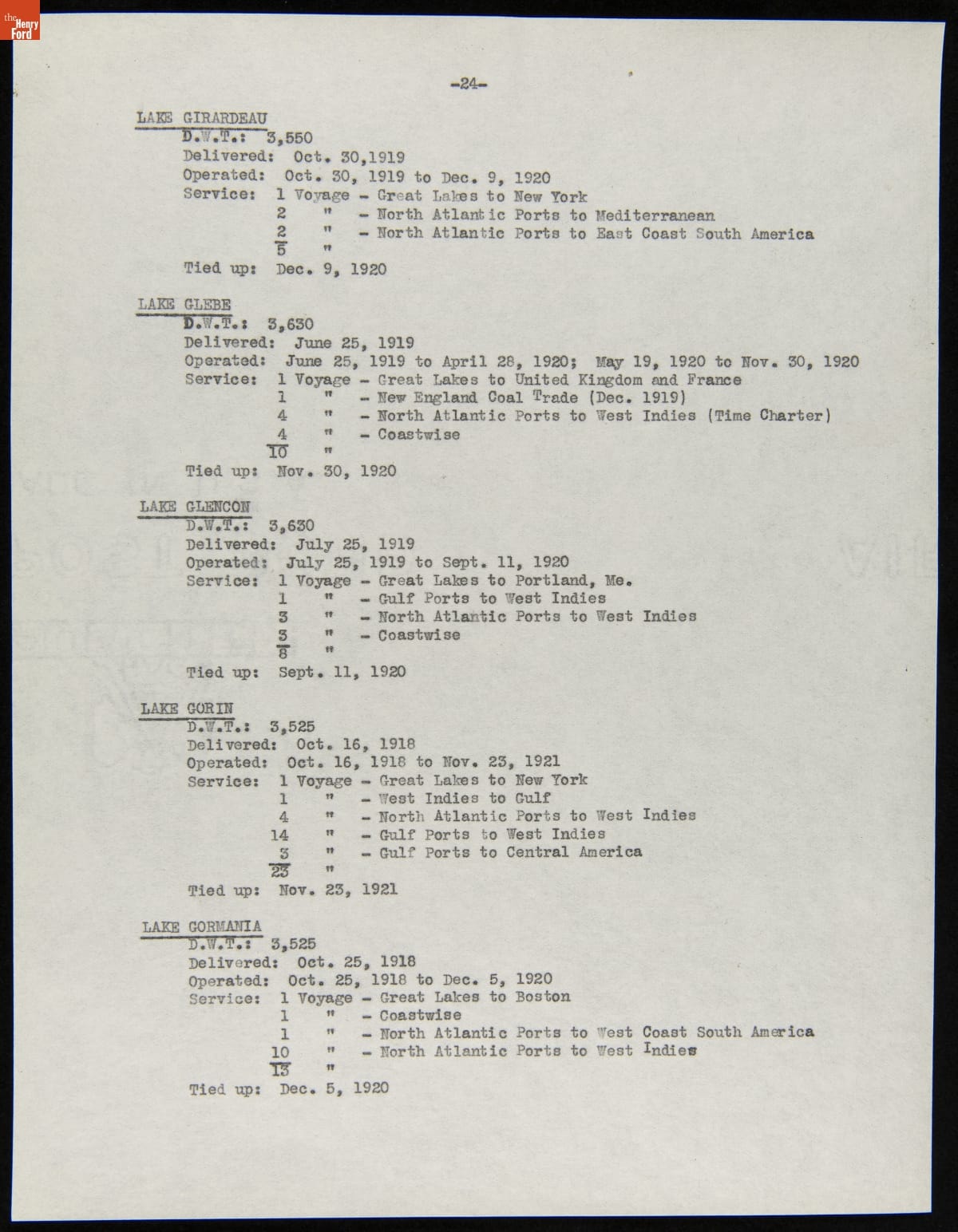 Henry Ford purchased 199 surplus World War I merchant ships from the United States government in 1925. Many of these ships were towed to Ford's River Rouge Plant and dismantled -- their steel, metal, and salvageable parts were recycled. The other vessels were refurbished or converted to help transport raw materials and finished products as part of Ford's operations.