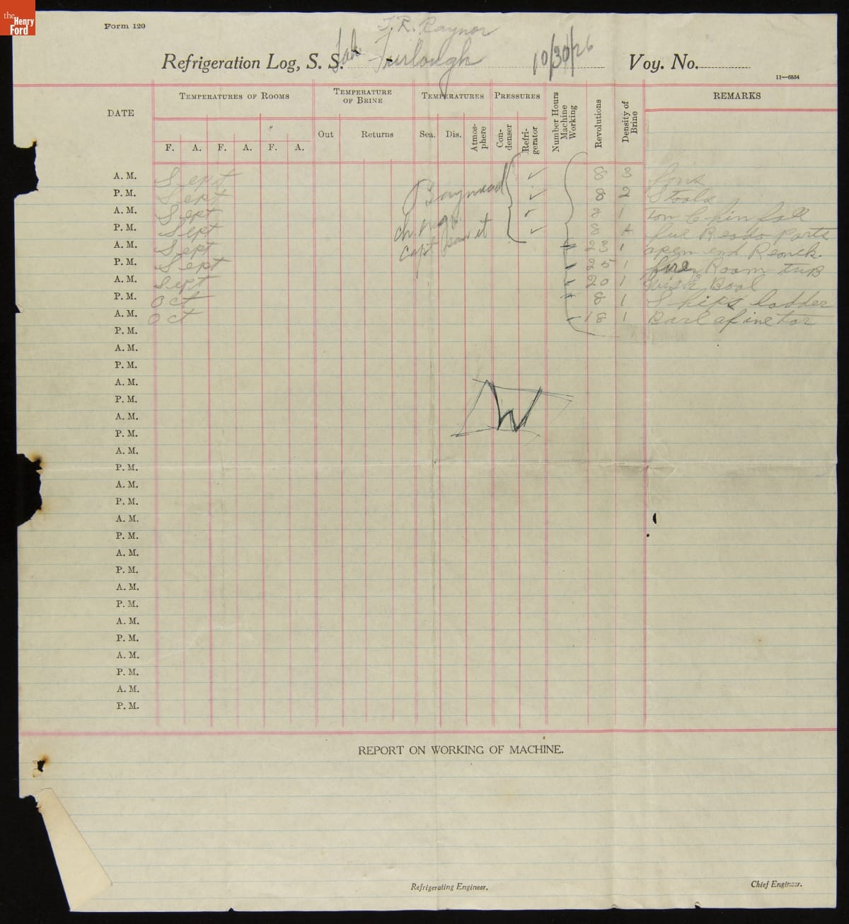 Letter regarding Transfer of Supplies from Ford Barge "Lake Forsby" to Ford Tugboat "Baymead," November 3, 1926
