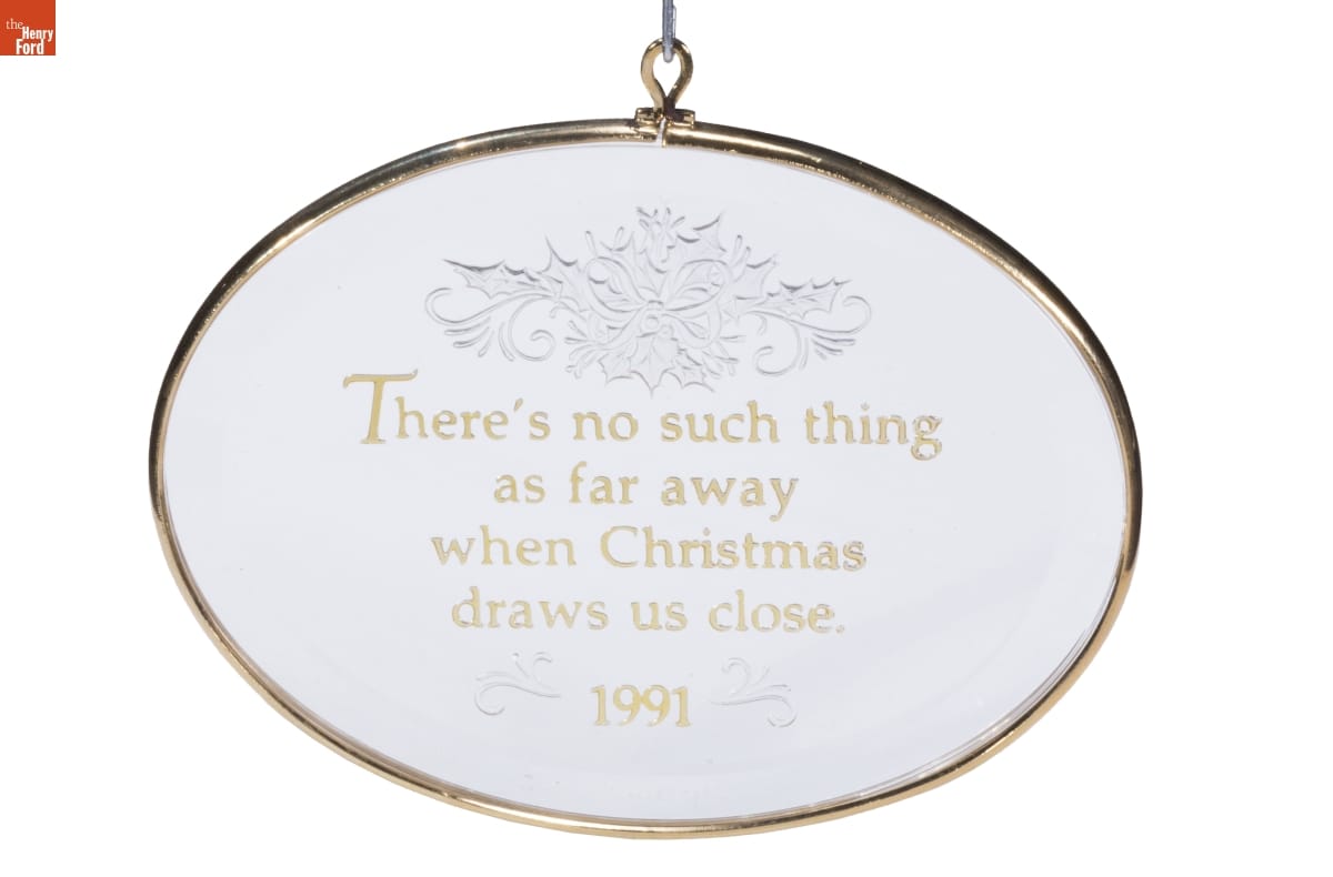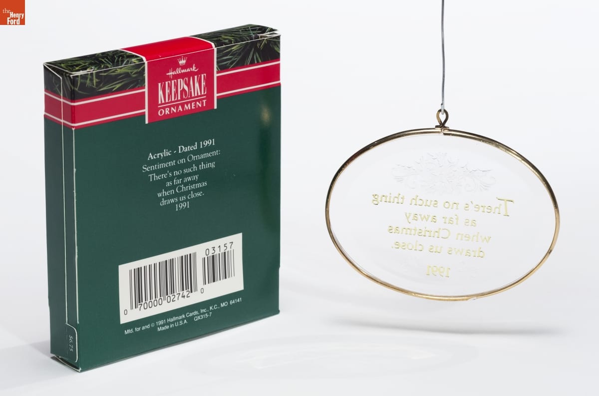 Hallmark / KEEPSAKE / ORNAMENT / Acrylic - Dated 1991 / Sentiment on Ornament: / There's no such thing / as far away / when Christmas / draws us close. / 1991 / Mfd. for and (C) 1991 Hallmark Cards, Inc., K.C., MO 64141 / Made in U.S.A. QX315-7