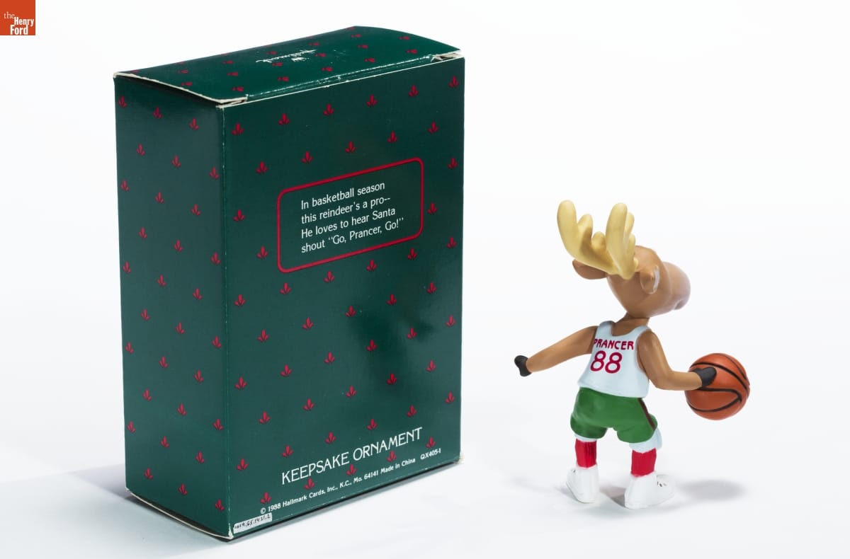 In basketball season / this reindeer's a pro-- / He loves to hear Santa / shout "Go, Prancer, Go!" / KEEPSAKE ORNAMENT / (c) 1988 Hallmark Cards, Inc., K.C., Mo. 64141 Made in China QX405-1