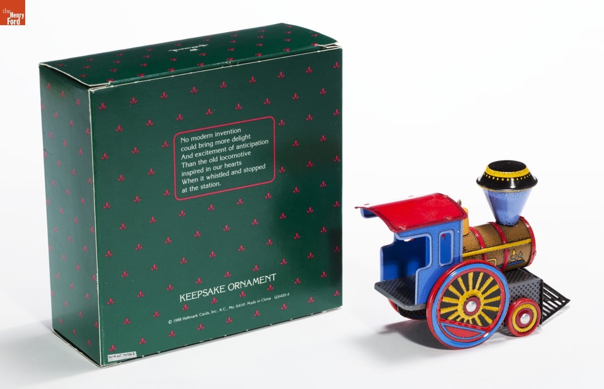 No modern invention / could bring more delight / And excitement of anticipation / Then the old locomotive / inspired in our hearts / When it whistled and stopped / at the station. / KEEPSAKE ORNAMENT / (c) 1988 Hallmark Cards, Inc., K.C., Mo. 64141 Made in China QX400-4