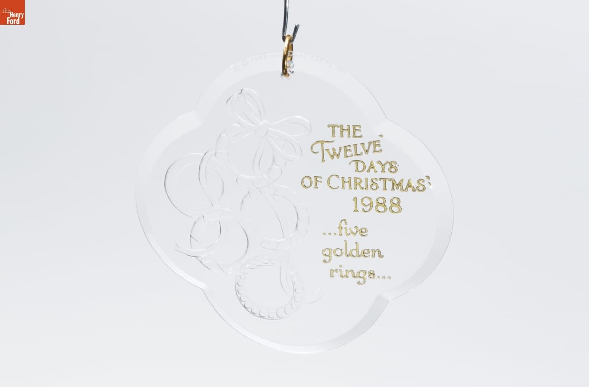 Hallmark / FIVE GOLDEN RINGS / ACRYLIC ORNAMENT - DATED 1988 / COLLECTOR'S SERIES / Fifth in the Twelve Days of Christmas Series. / Look for series verification 5 on this ornament.