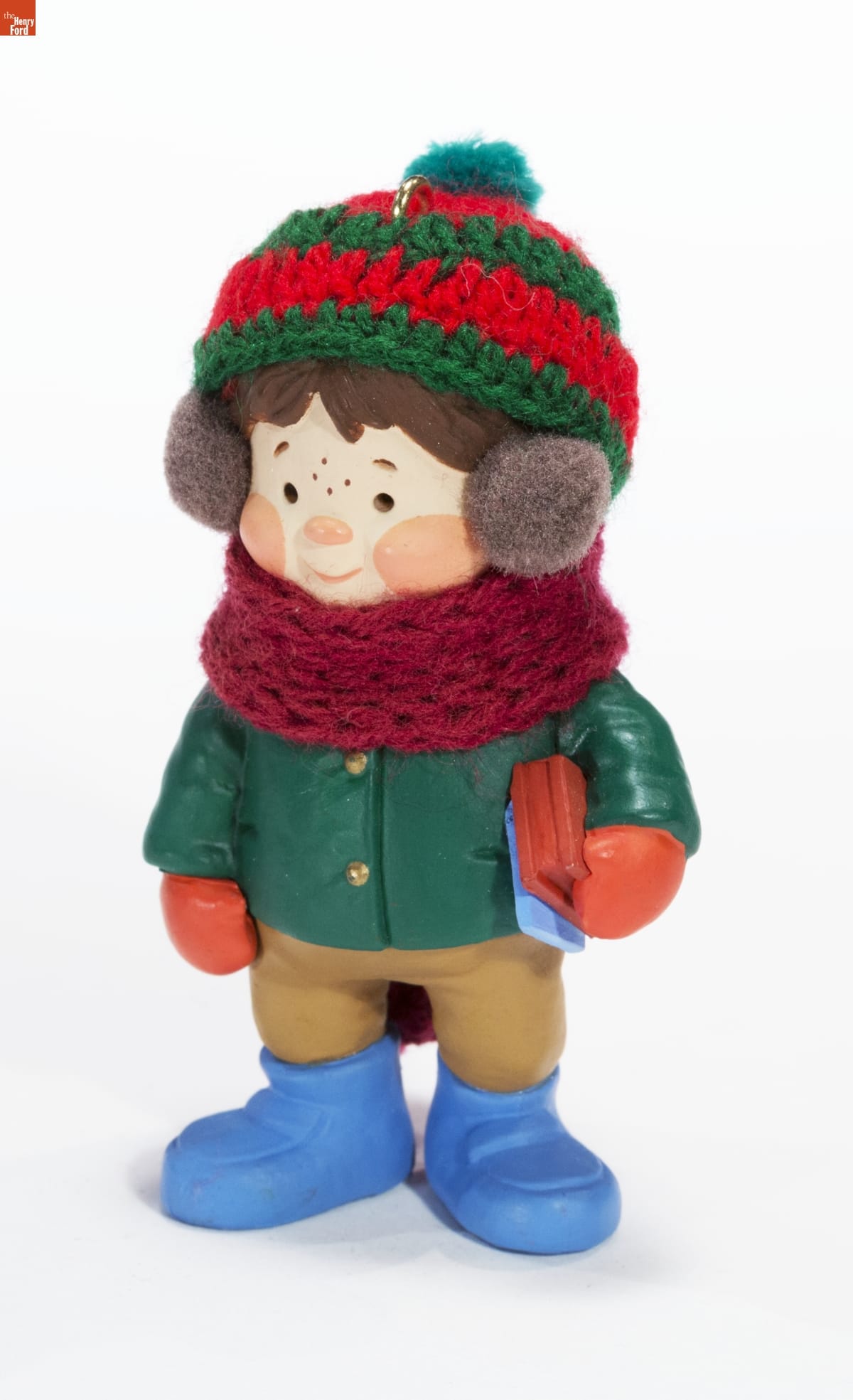 Designed by Hallmark Cards, Inc. in Kansas City, Missouri. Ornament made in Hong Kong. Hat and scarf made in China.
