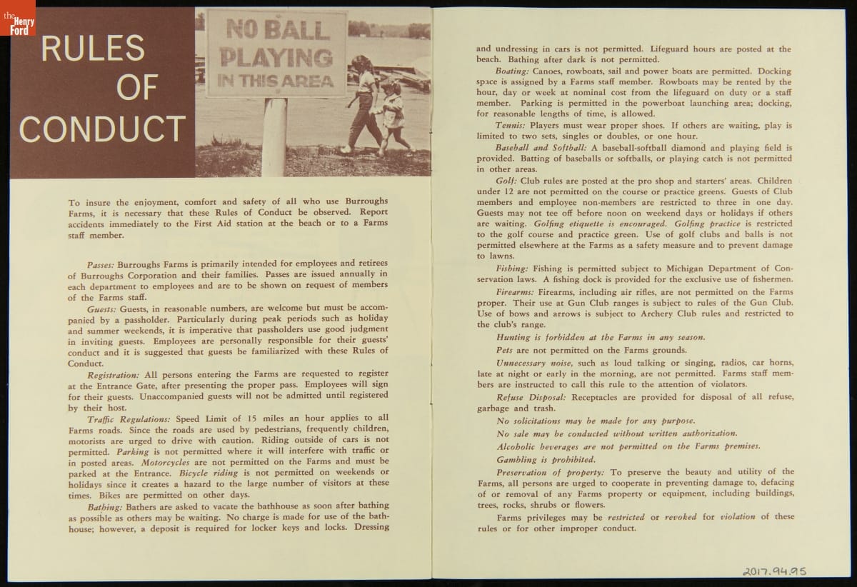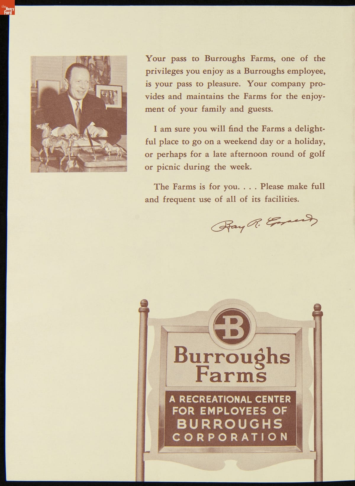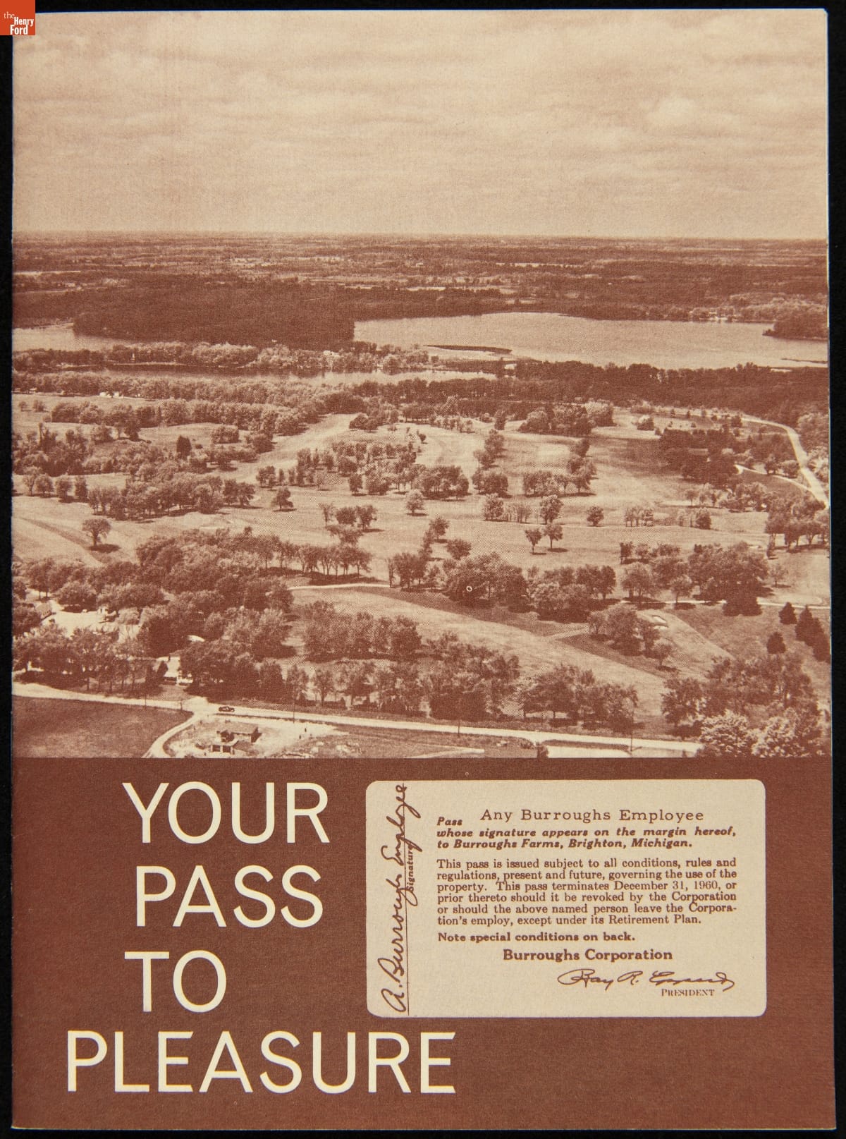 Burroughs Farms, a Recreational Center for Burroughs Employees, "Your Pass to Pleasure," 1960