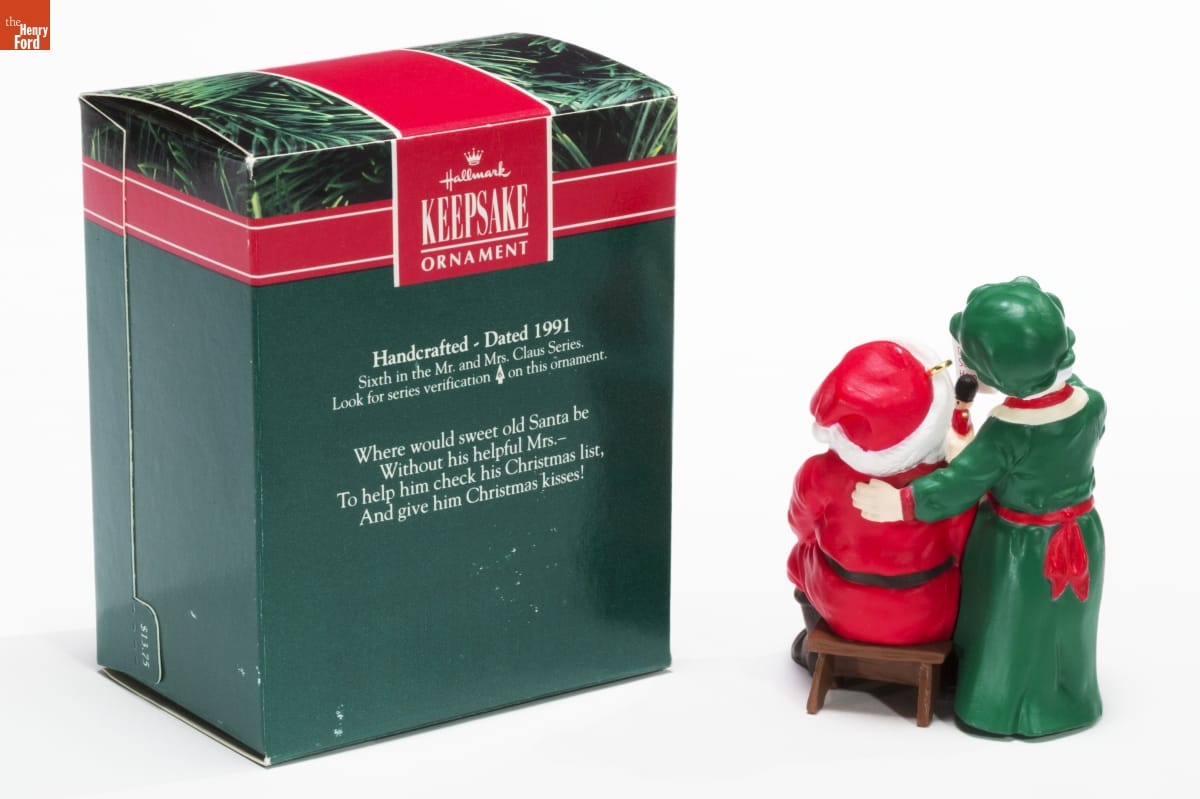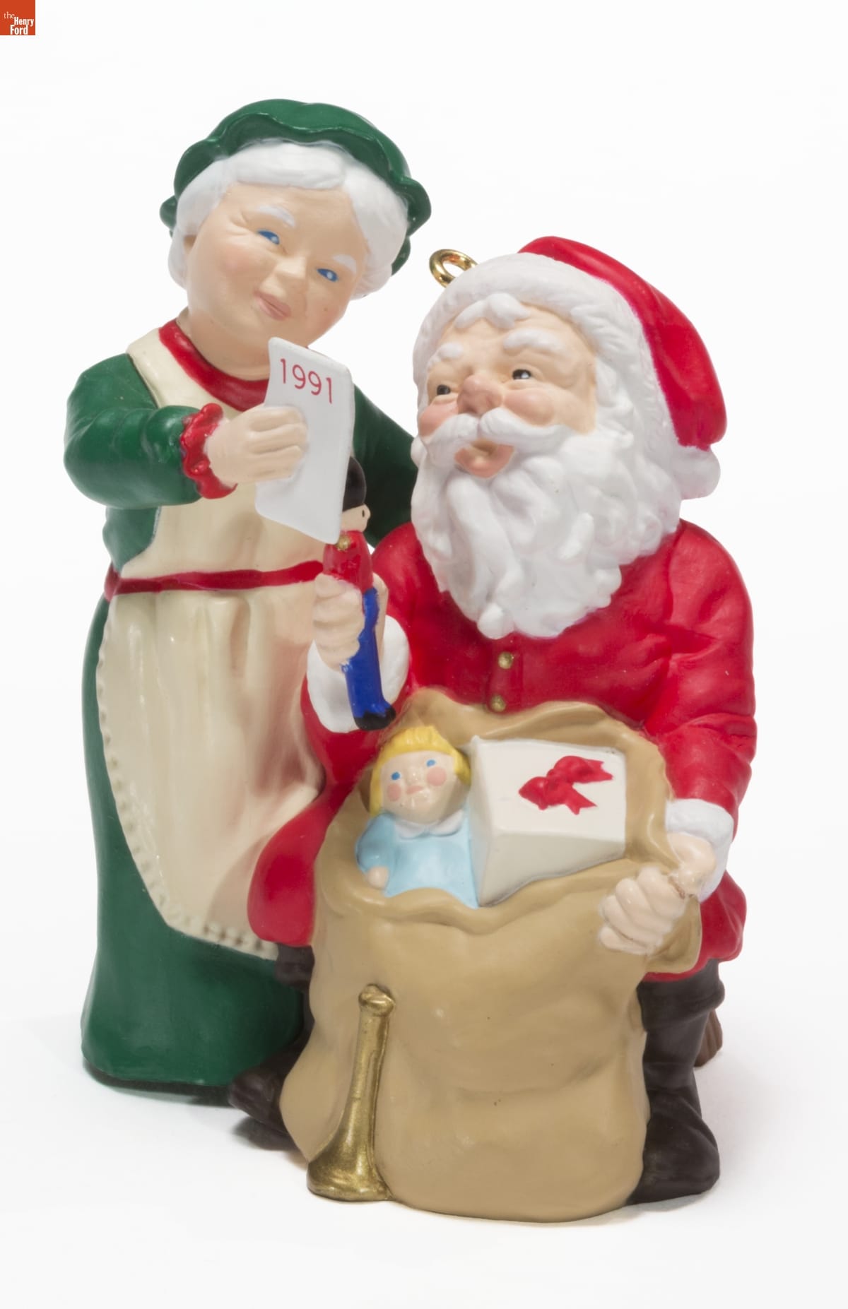 Hallmark / KEEPSAKE / ORNAMENT / Handcrafted - Dated 1991 / Sixth in the Mr. and Mrs. Claus Series. / Look for series verification 6 on this ornament. / Where would sweet old Santa be / Without his helpful Mrs.- / To help him check his Christmas list, / And give him Christmas kisses!