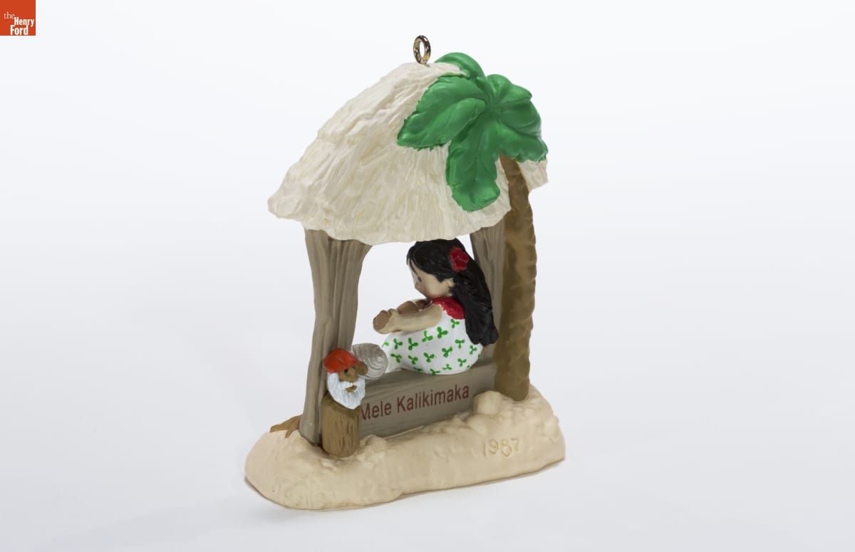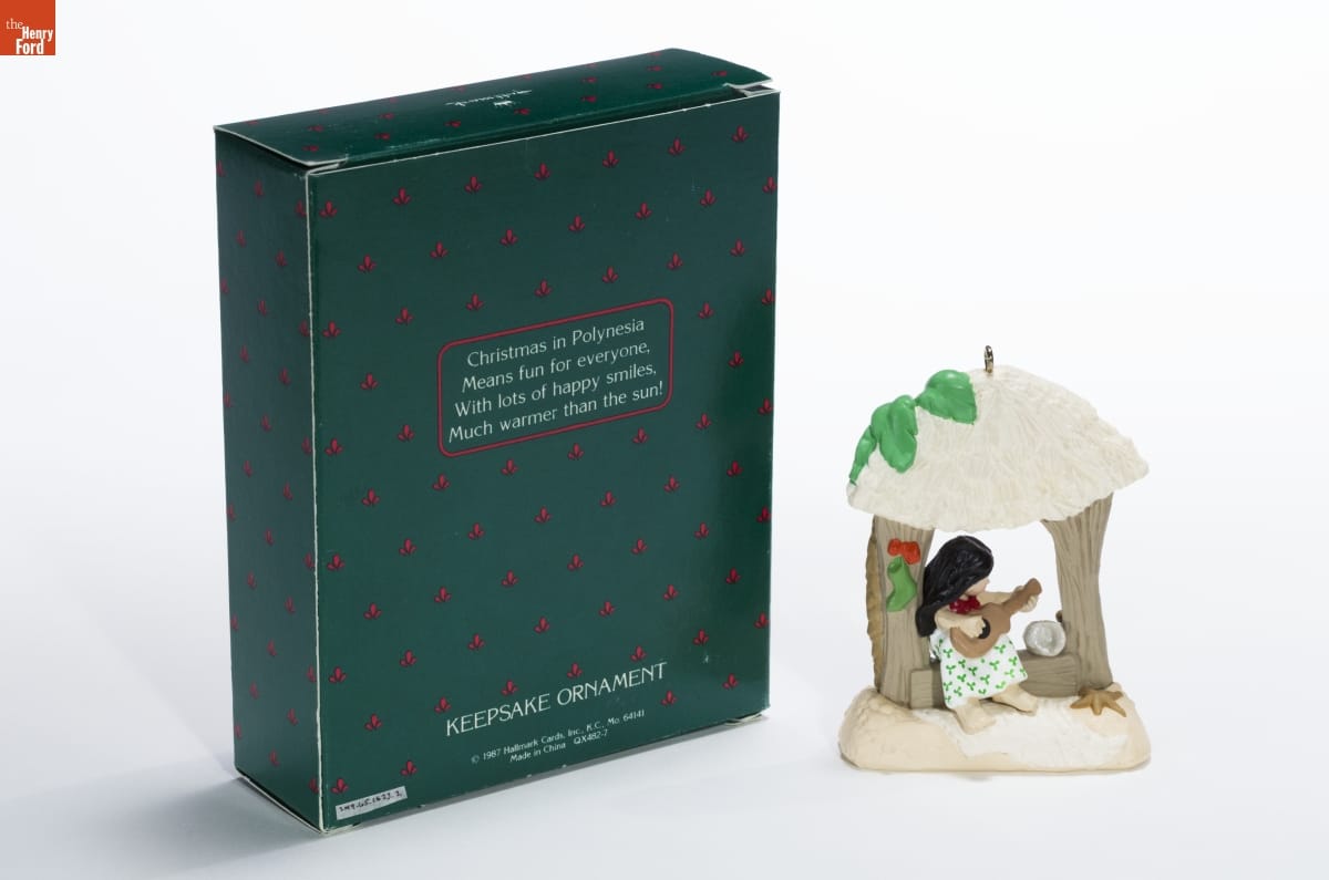 Christmas in Polynesia / Means fun for everyone, / With lots of happy smiles, / Much warmer than the sun! / KEEPSAKE ORNAMENT / (c) 1987 Hallmark Cards, Inc., K.C., Mo. 64141 / Made in China QX482-7