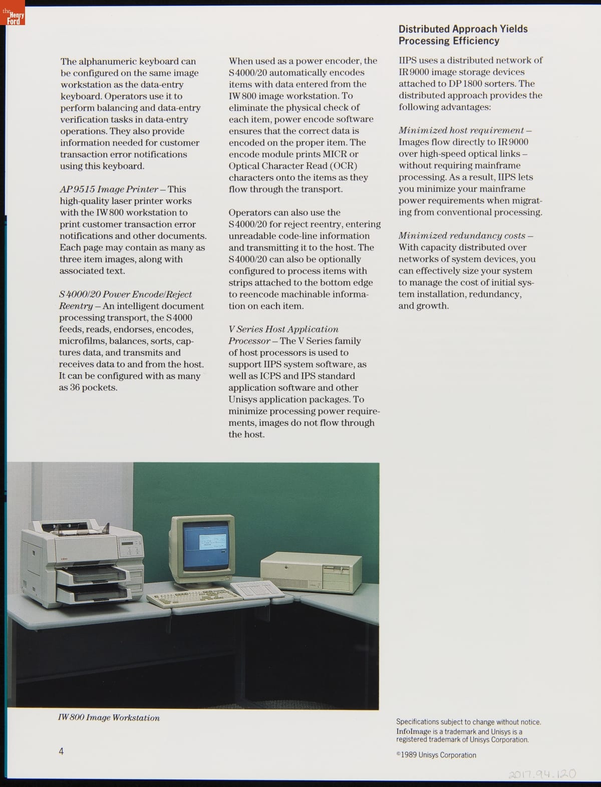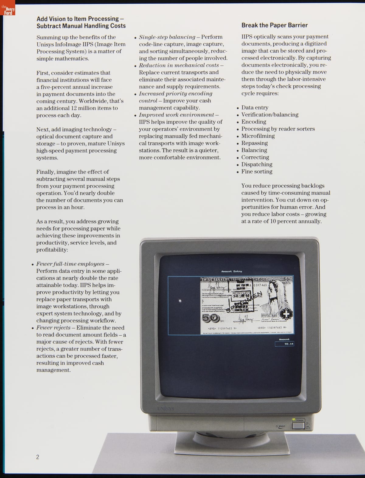 Unisys InfoImage Image Item Processing System (IIPS) Advertising Booklet, 1989
