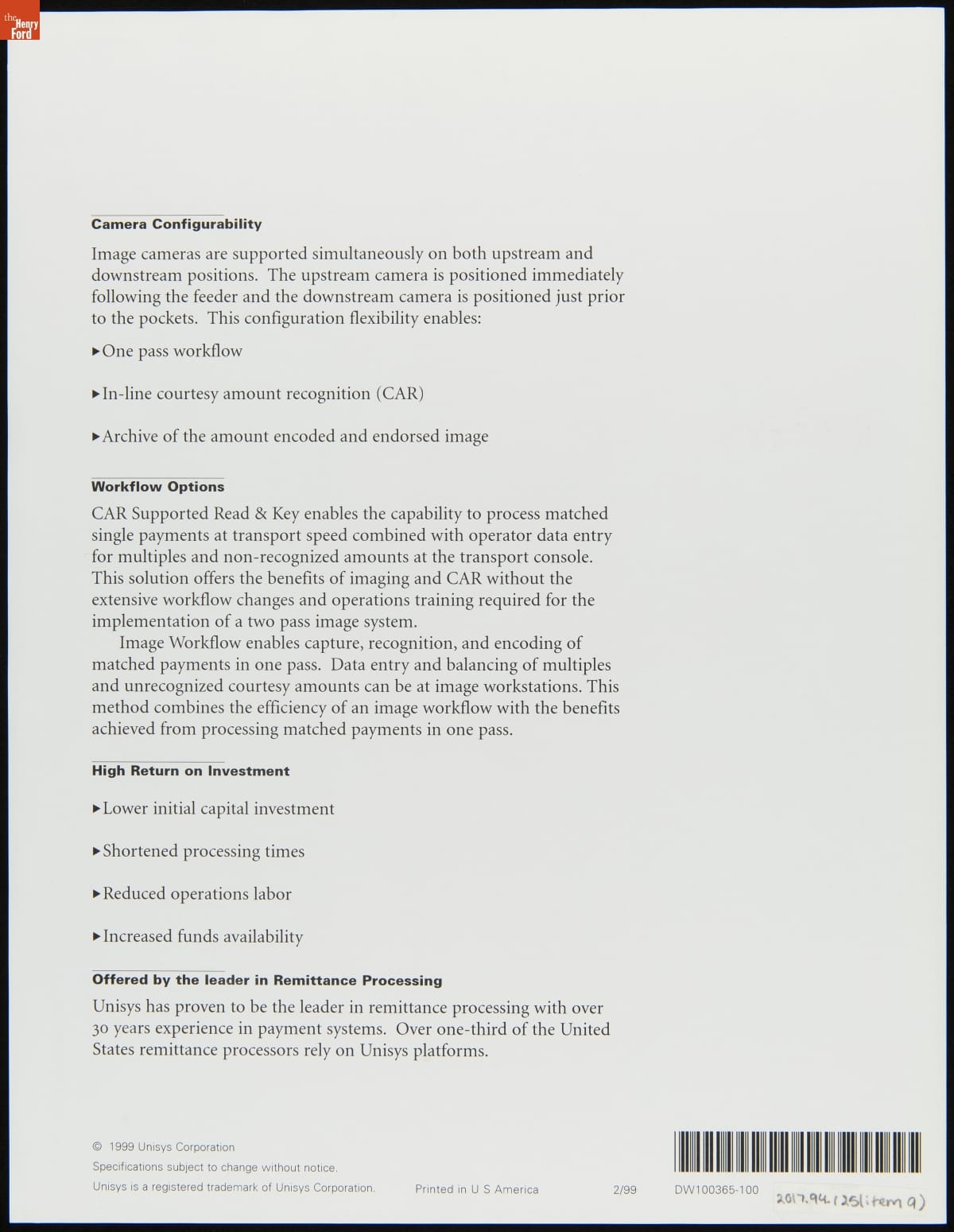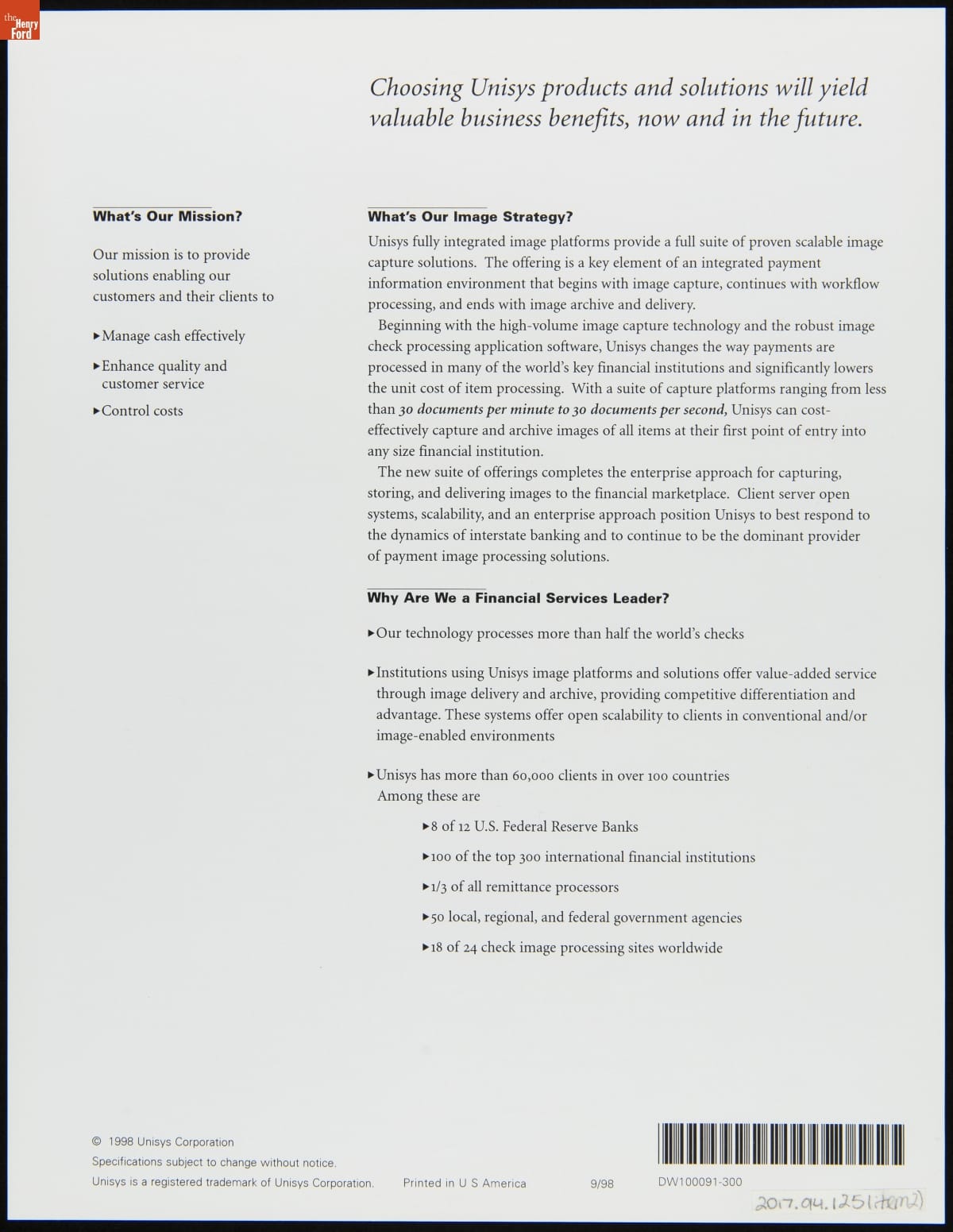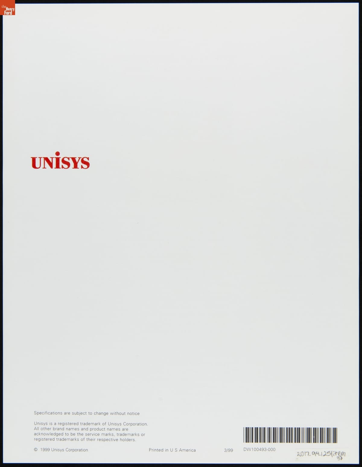 Printed by the Unisys Corporation in Plymouth, Michigan.