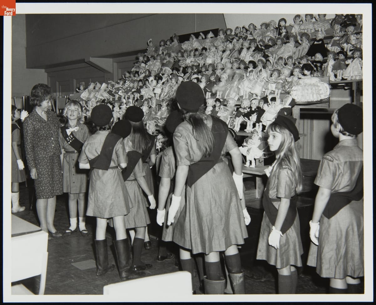 Members of Girl Scout Intermediate Troop 217 Viewing a Doll Display, November 1966