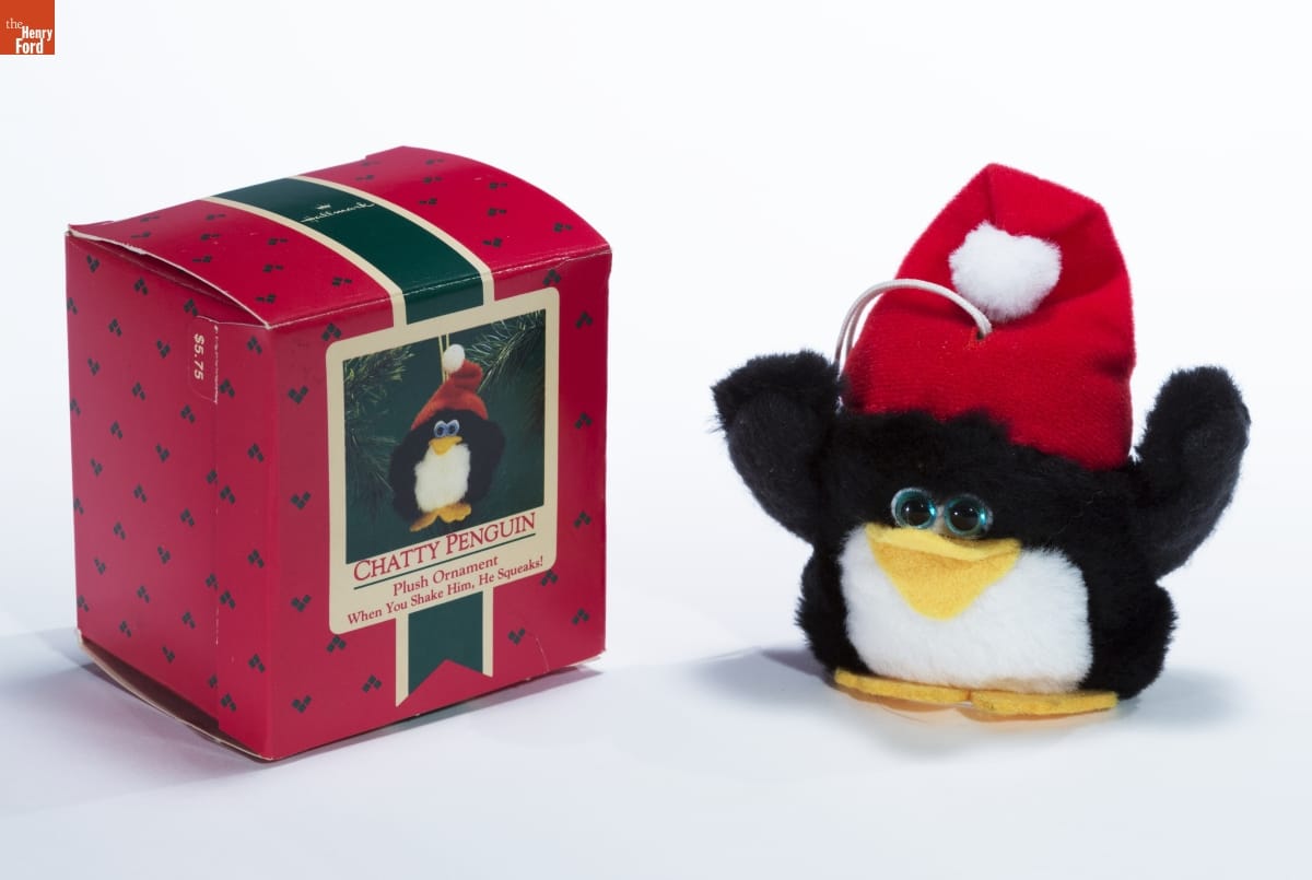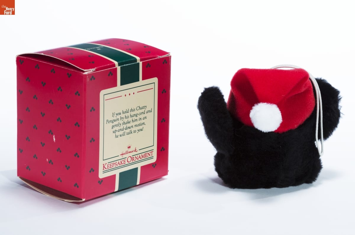 If you hold this Chatty / Penguin by his hang-cord and / gently shake him in an / up-and-down motion, / he will talk to you! / Hallmark / KEEPSAKE ORNAMENT
