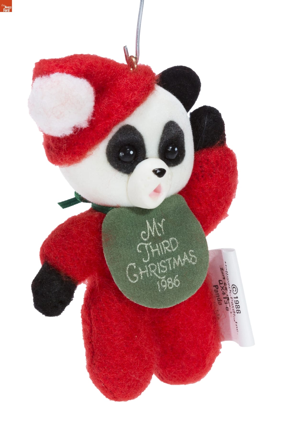 I'm a beary merry panda / with just one job to do-- / I've come to decorate your tree / especially for you. / So find a very special bough, / one just right for me, / So everyone will see this is / your Christmas number three! / KEEPSAKE ORNAMENT / (C) 1986 Hallmark Cards, Inc., K.C., Mo. 64141 / Made in China QX413-6