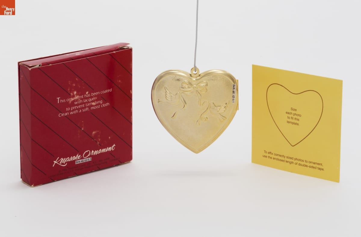 This ornament has been coated / with lacquer / to prevent tarnishing. / Clean with a soft, moist cloth. / KEEPSAKE ORNAMENT / (C) 1986 Hallmark Cards, Inc., K.C., Mo. 64141 / Locket Made in U.S.A. Hanger Made in Hong Kong QX400-3