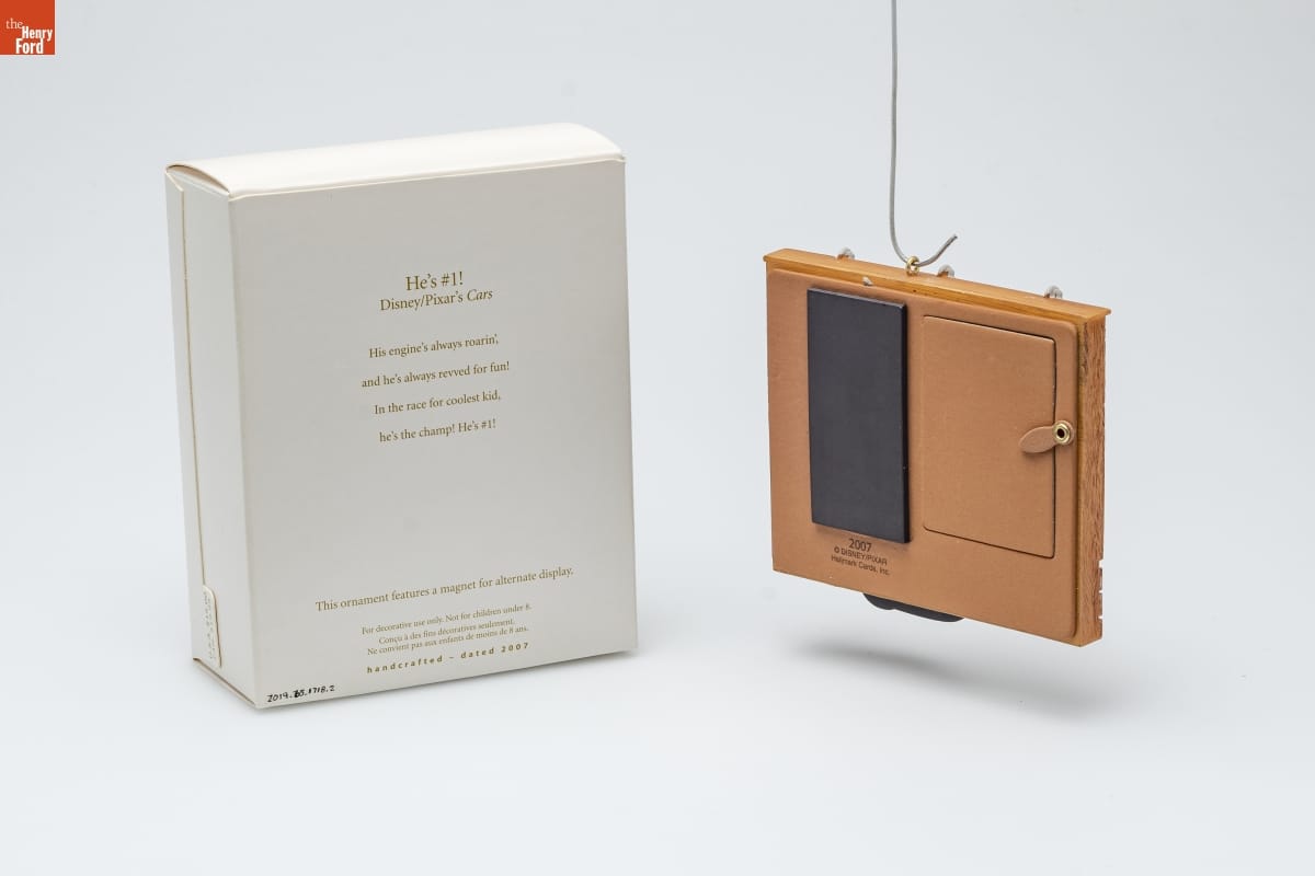He's #1! / Disney/Pixar's Cars / His engine's always roarin', / and he's always revved for fun! / In the race for coolest kid, / he's the champ! He's #1! / This ornament features a magnet for alternate display. / For decorative use only. Not for children under 8. / Concu a des fins decoratives seulement. / Ne convient pas aux enfants de moins de 8 ans. / handcrafted - dated 2007