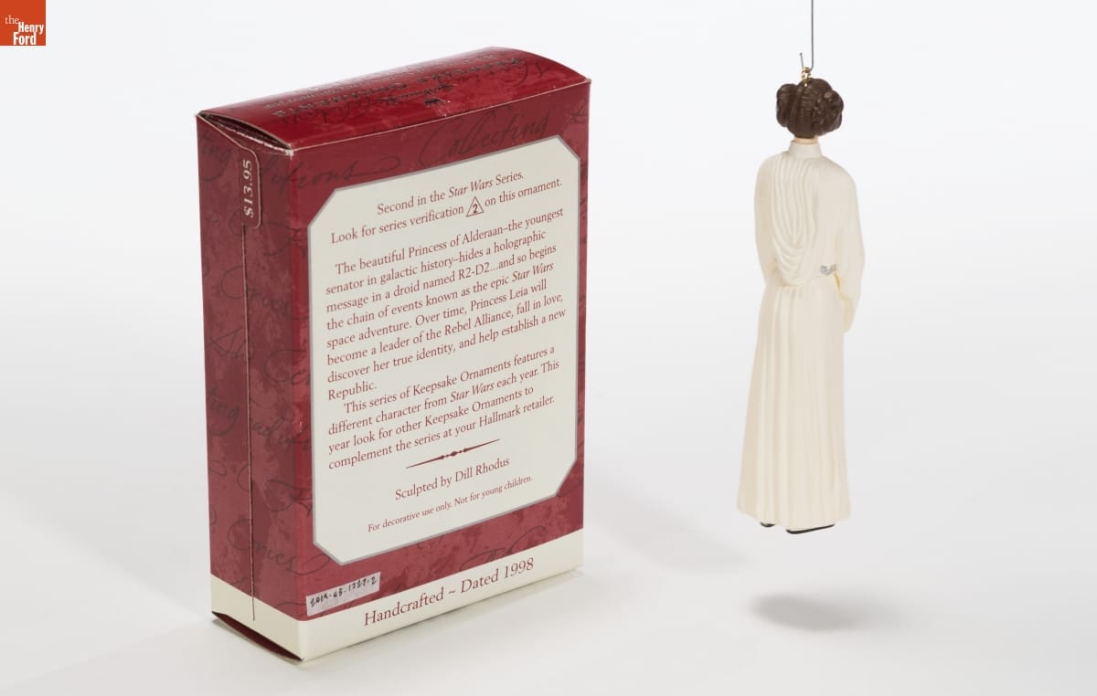 Second in the Star Wars Series. / Look for series verification 2 on this ornament. / The beautiful Princess of Alderaan-the youngest senator in galactic history-hides a holographic message in a droid named R2-D2...and so begins the chain of events known as the epic Star Wars space adventure. Over time, Princess Leia will become a leader of the Rebel Alliance, fall in love, discover her true identity, and help establish a new Republic. / This series of Keepsake Ornaments features a different character from Star Wars each year. this year look for other Keepsake Ornaments to complement the series at your Hallmark retailer. / Sculpted by Dill Rhodus / For decorative use only. Not for young children. / Handcrafted - Dated 1998