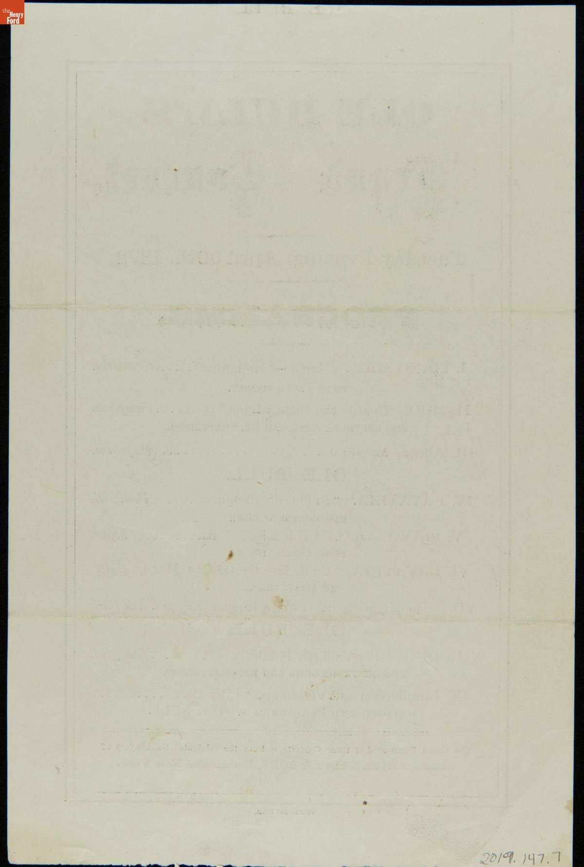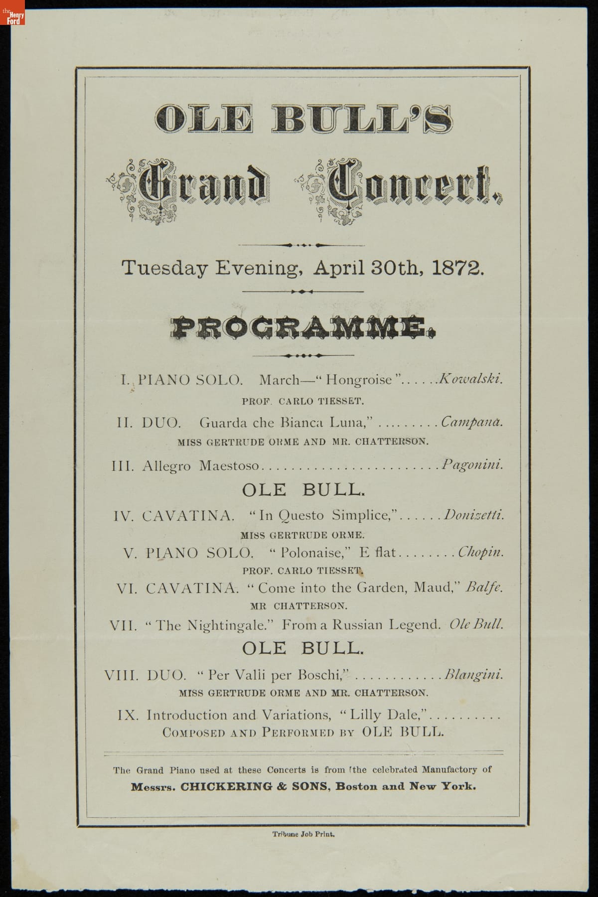 Program, "Ole Bull's Grand Concert," April 30, 1872