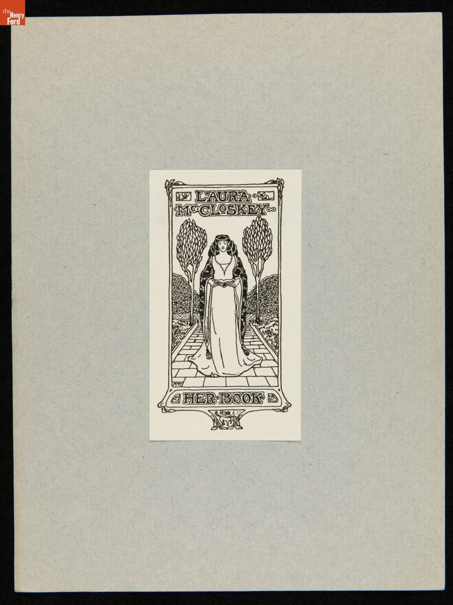 Bookplates show ownership, but they can also tell us more. Often pasted on the inside of a book's front cover or endpaper, these printed labels contain the owner's name and sometimes the words "ex-libris" (Latin for "from the library of"). Coats of arms, crests, other decorative images, poems, mottoes, and even font type provide insight into the beliefs, passions, and interests of the book's owner.