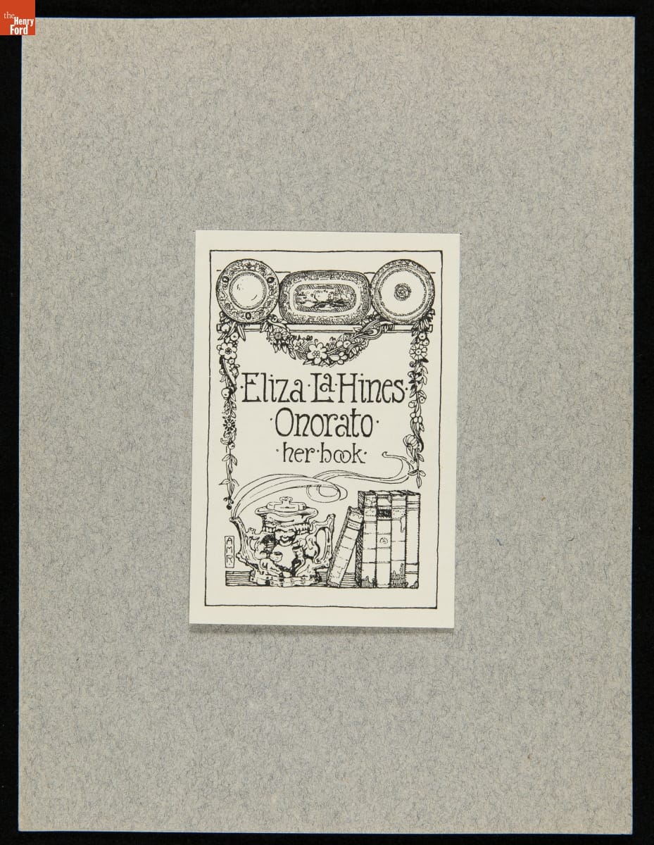 Bookplate of Eliza LaHines Onorato, 1905-1917