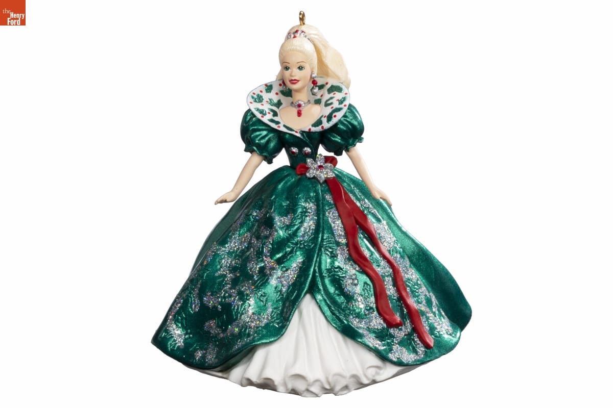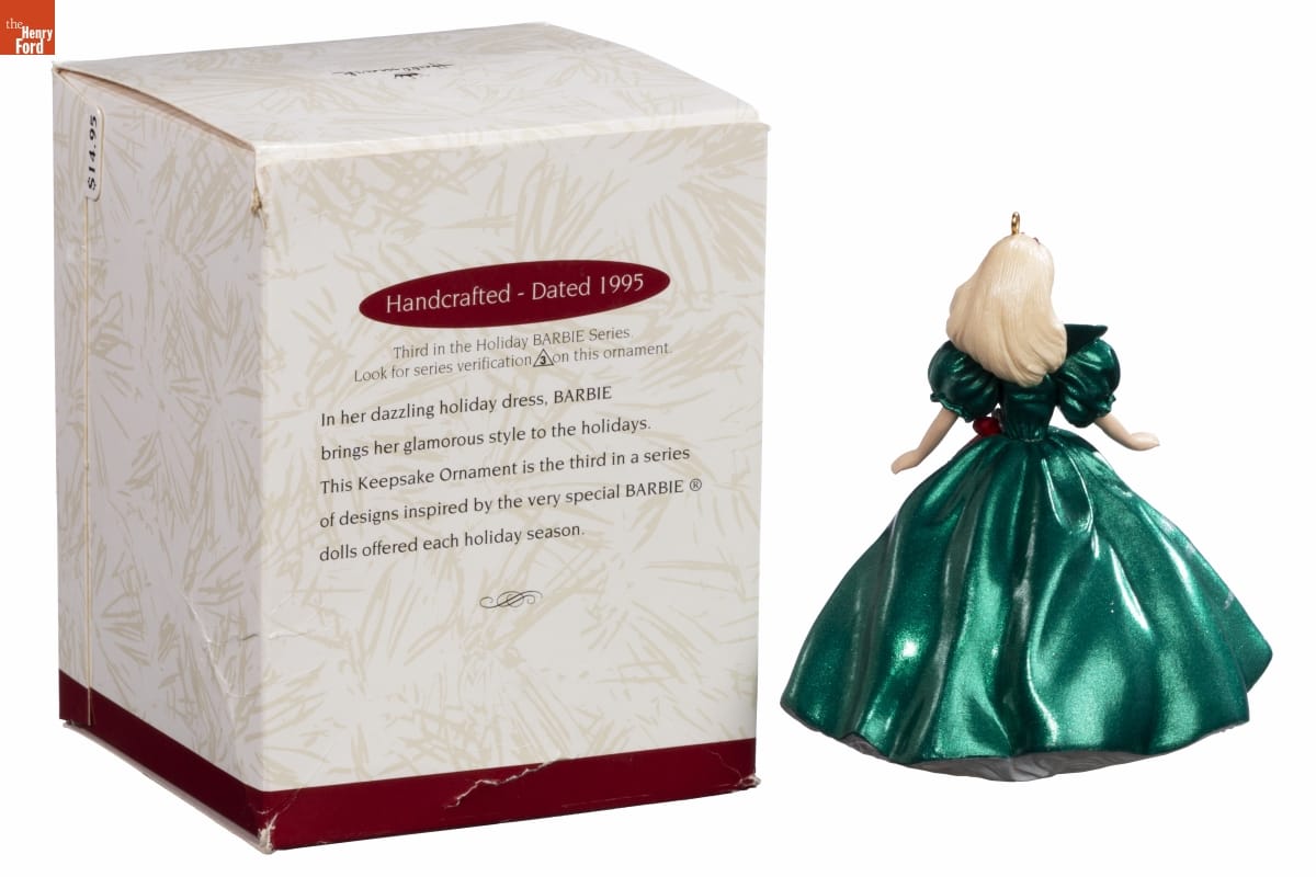 Handcrafted - Dated 1995 / Third in the Holiday BARBIE Series. / Look for series verification 3 on this ornament. / In her dazzling holiday dress, BARBIE / brings her glamorous style to the holidays. / This Keepsake Ornament is the third in a series / of designs inspired by the very special BARBIE(R) / dolls offered each holiday season.