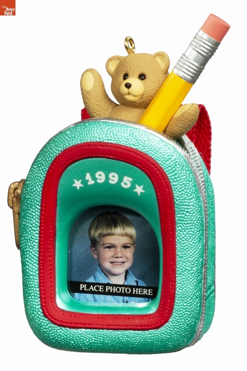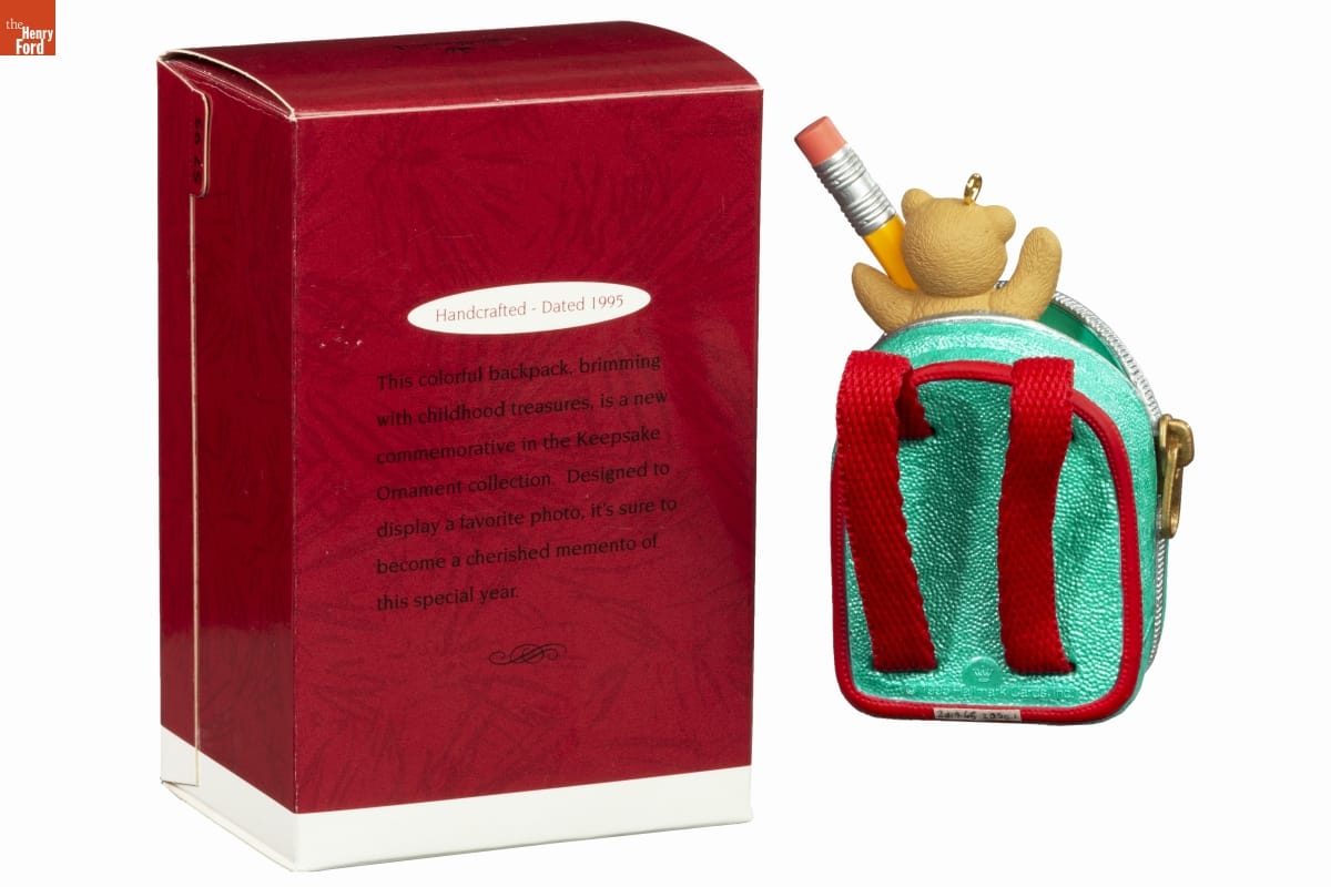 Handcrafted - Dated 1995 / This colorful backpack, brimming / with childhood treasures, is a new / commemorative in the Keepsake / Ornament collection. Designed to / display a favorite photo, it's sure to / become a cherished memento of / this special year.