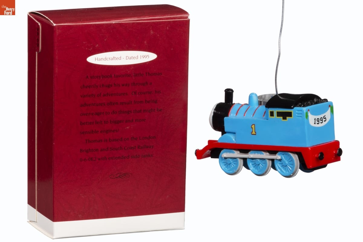 Handcrafted - Dated 1995 / A storybook favorite, little Thomas / cheerily chugs his way through a / variety of adventures. Of course, his / adventures often result from being / over-eager to do things that might be / better left to bigger and more / sensible engines! / Thomas is based on the London / Brighton and South Coast Railway / 0-6-0E2 with extended side tanks.