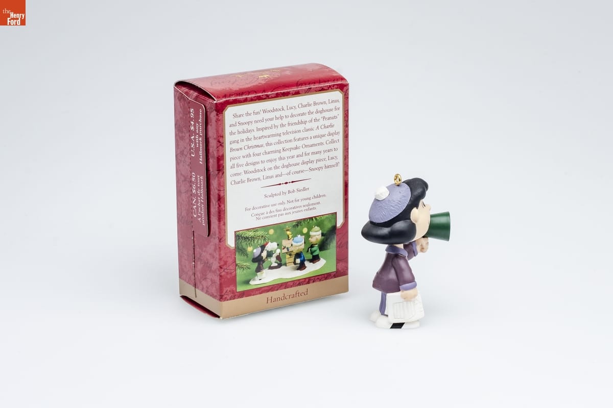 Share the fun! Woodstock, Lucy, Charlie Brown, Linus, / and Snoopy need your help to decorate the doghouse for / the holidays. Inspired by the friendship of the "Peanuts" / gang in the heartwarming television classic A Charlie / Brown Christmas, this collection features a unique display / piece with four charming Keepsake Ornaments. Collect / all five designs to enjoy this year and for many years to / come: Woodstock on the doghouse display piece, Lucy, / Charlie Brown, Linus and--of course--Snoopy himself! / Sculpted by Bob Siedler / For decorative use only. Not for young children. / Concue a des fins decoratives seulement. / Ne convient pas aux jeunes enfants. / Handcrafted