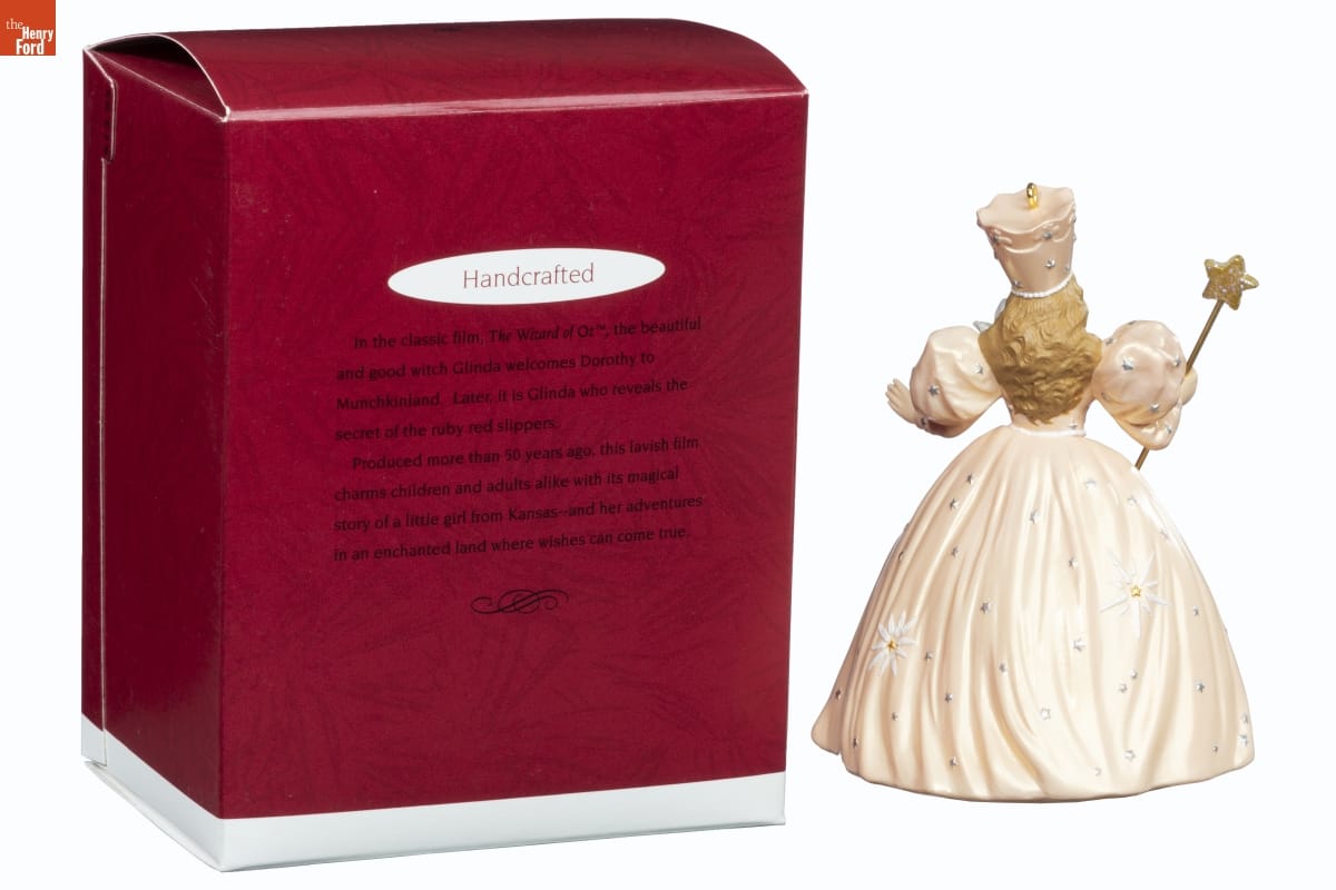 Handcrafted / In the classic film, The Wizard of OZ TM, the beautiful / and good witch Glinda welcomes Dorothy to / Munchkinland. Later, it is Glinda who reveals the / secret of the ruby red slippers. / Produced more than 50 years ago, this lavish film / charms children and adults alike with its magical / story of a little girl from Kansas--and her adventures / in an enchanted land where wishes can come true.
