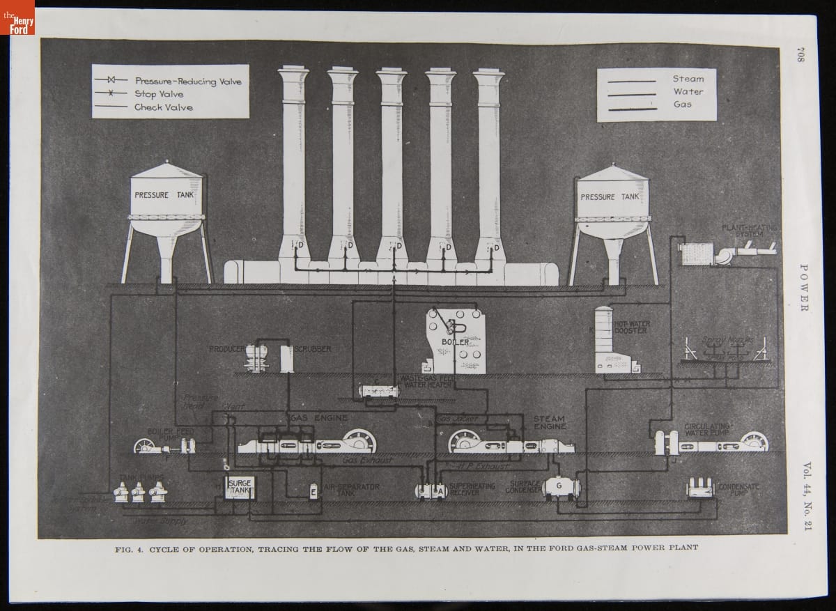 Cycle of Operation, Tracing the Flow of the Gas, Steam and Water, in the Ford Gas-Steam Power Plant, 1916