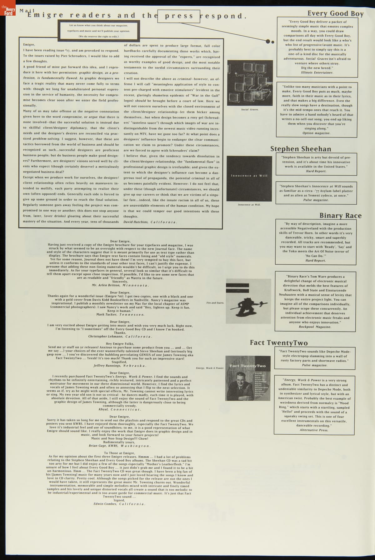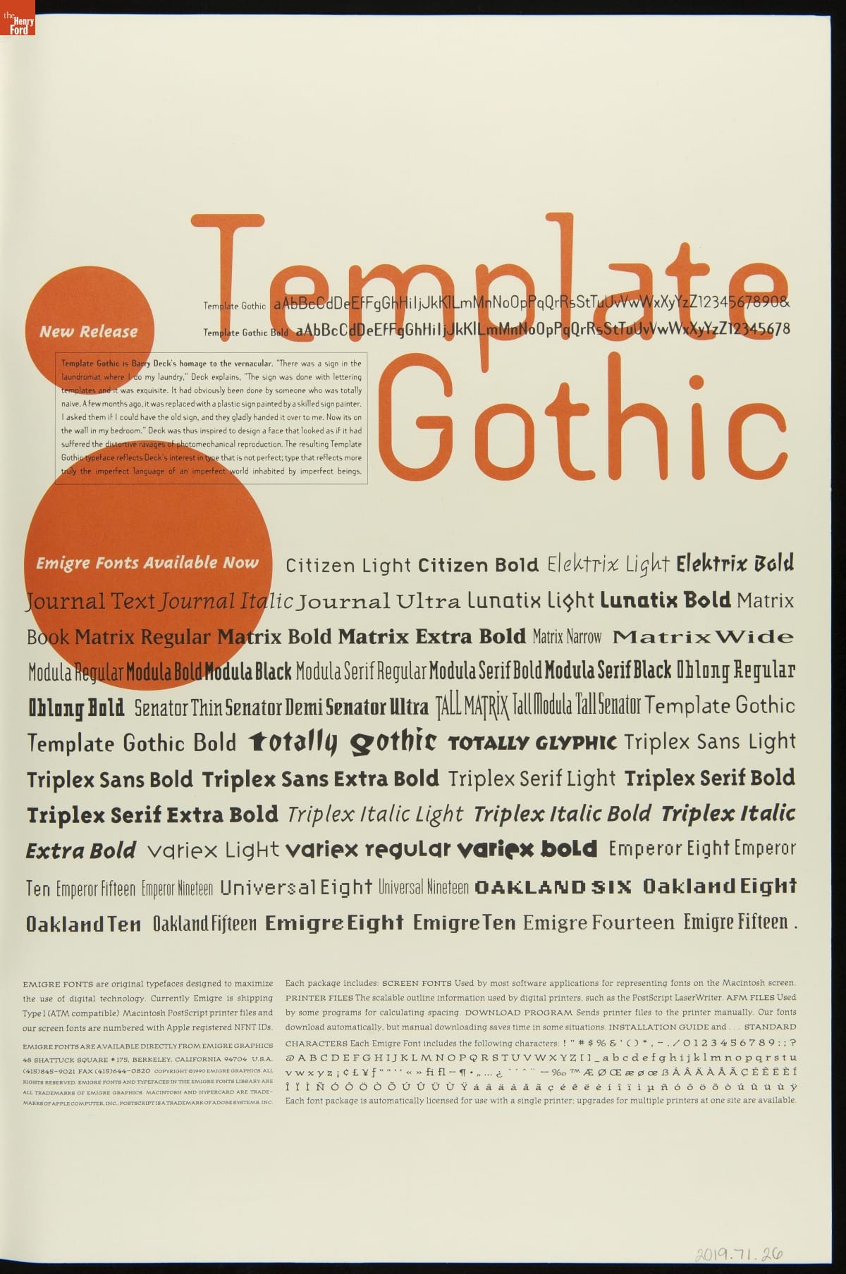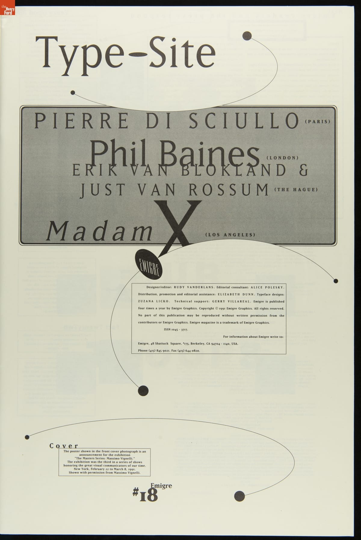 Published by Emigre Graphics, Berkeley, California. Printed at Lompa Printing, Albany, California.