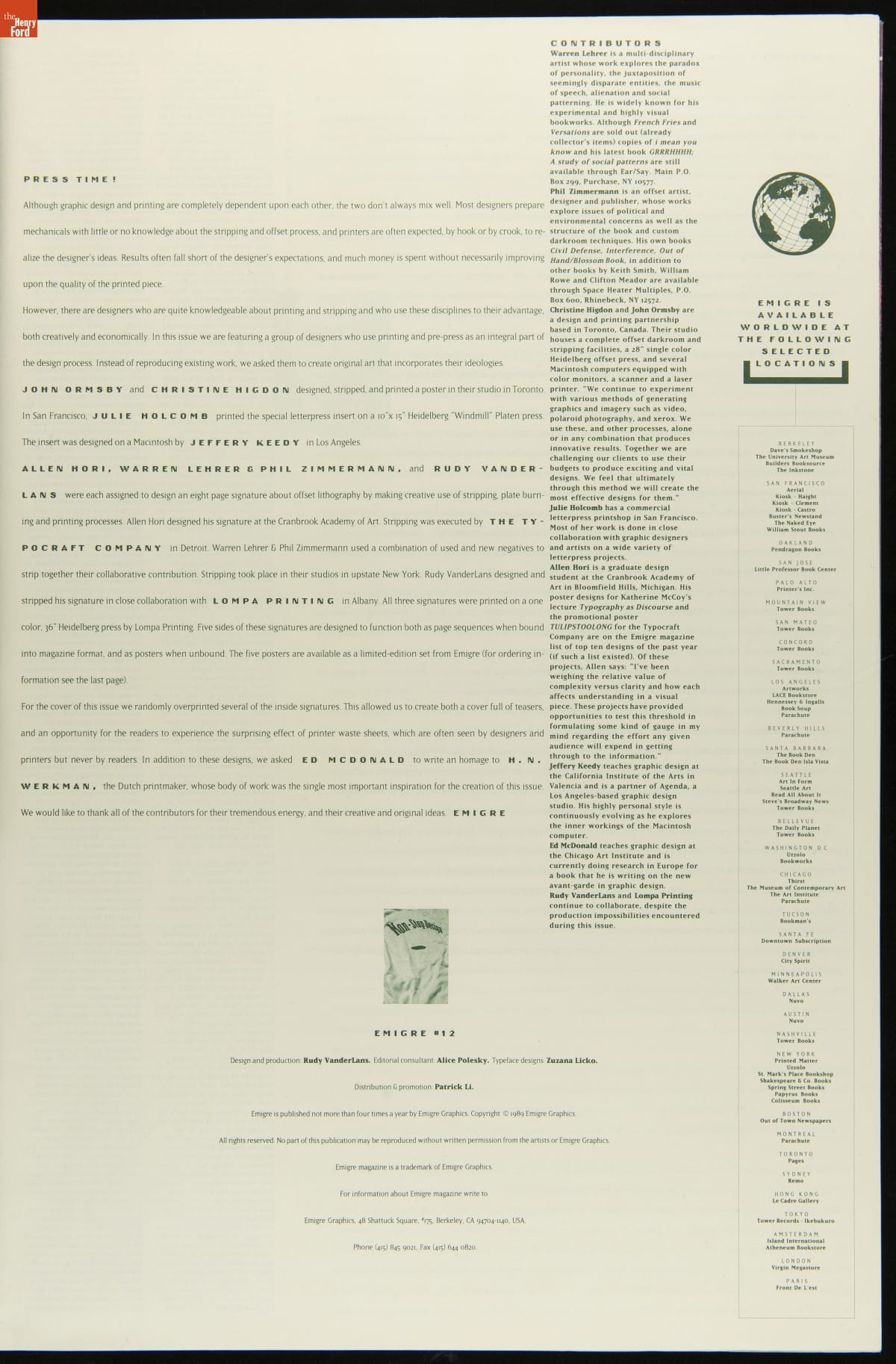 Magazine, Emigre No. 12, "Press Time!," 1989