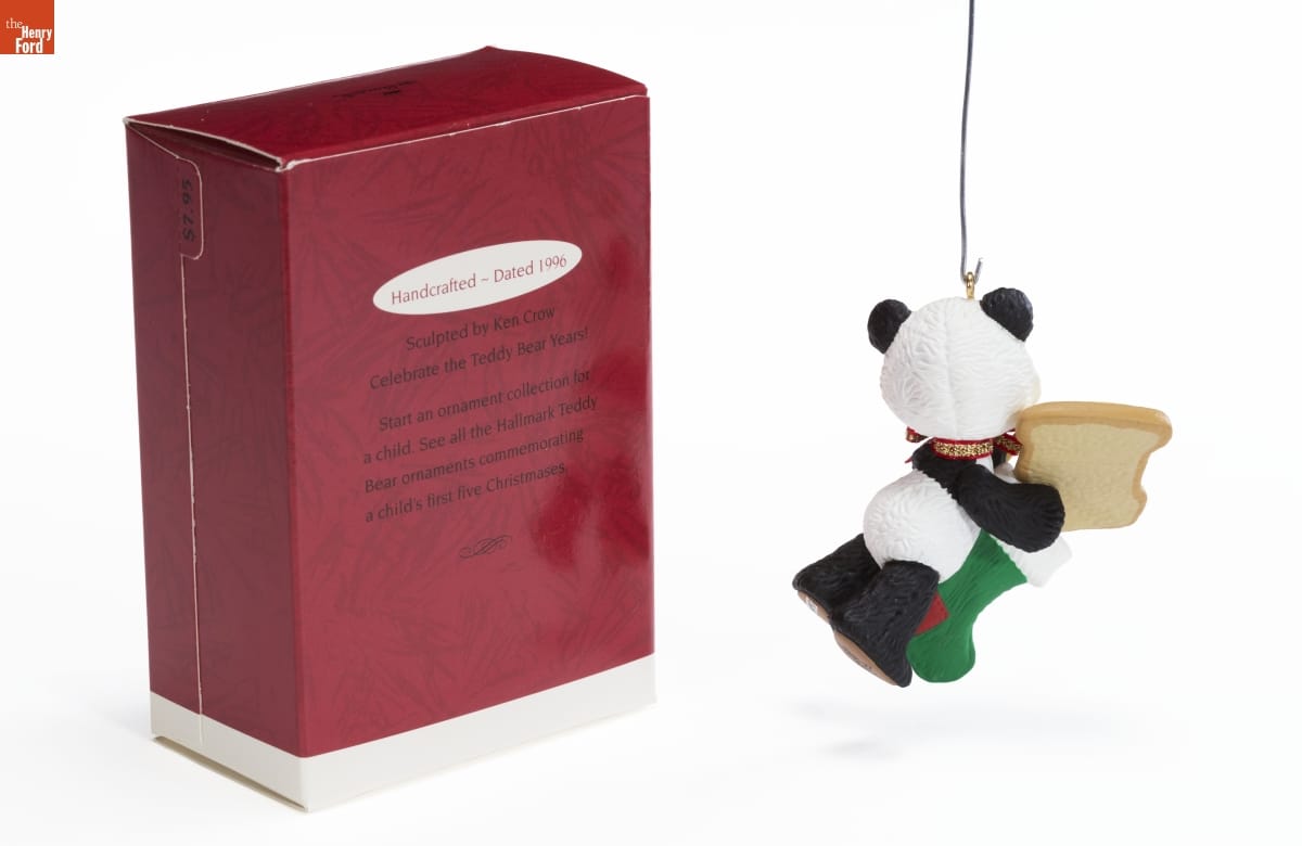 Handcrafted - Dated 1996 / Sculpted by Ken Crow / Celebrate the Teddy Bear Years! / Start an ornament collection for / a child. See all the Hallmark Teddy / Bear ornaments commemorating / a child's first five Christmases.