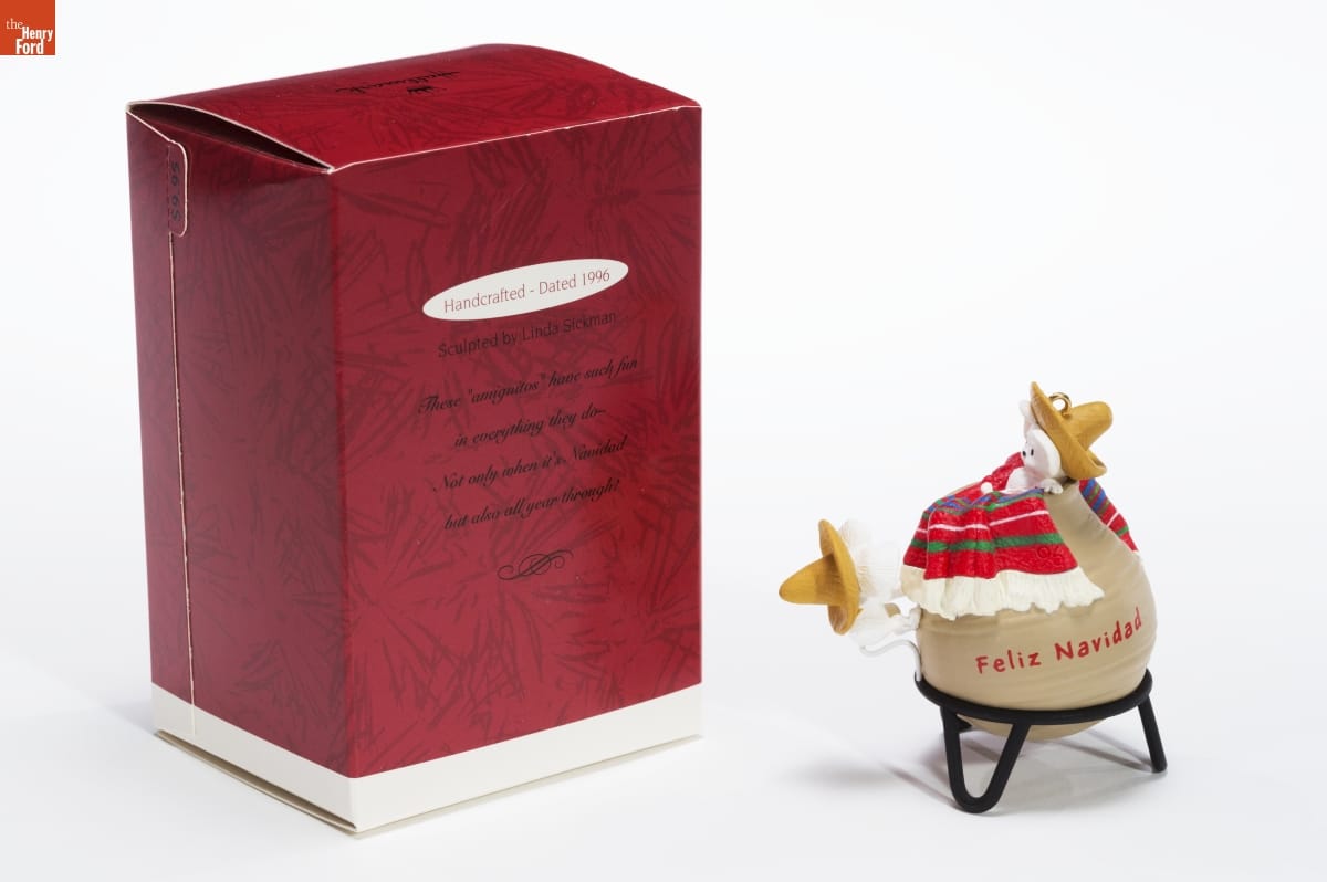 Handcrafted - Dated 1996 / Sculpted by Linda Sickman / These "amiguitos" have such fun / in everything they do-- / Not only when it's Navidad / but also all year through!