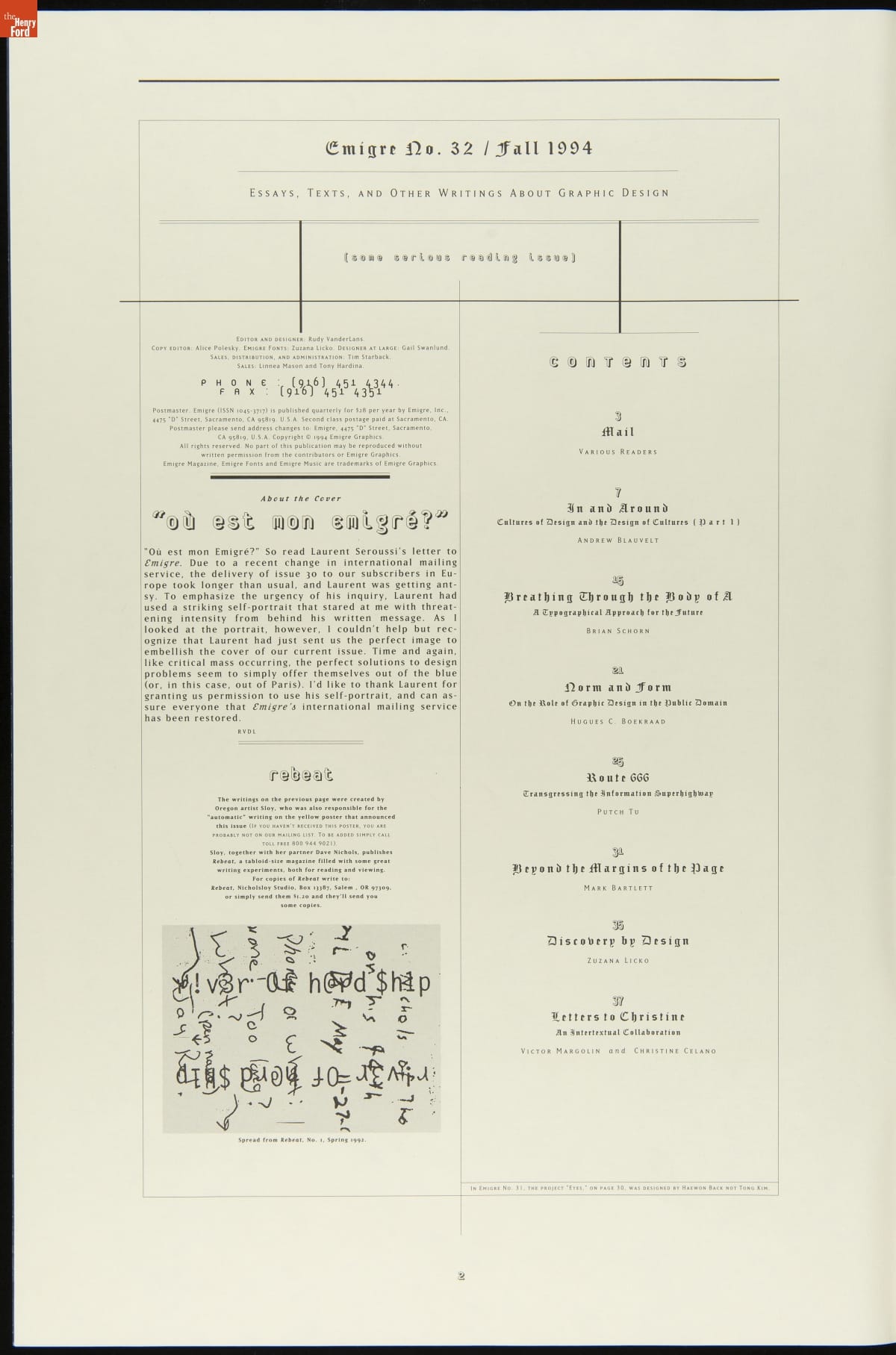 Magazine, Emigre No. 32, "Essays, Texts and Other Writings about Graphic Design," 1994