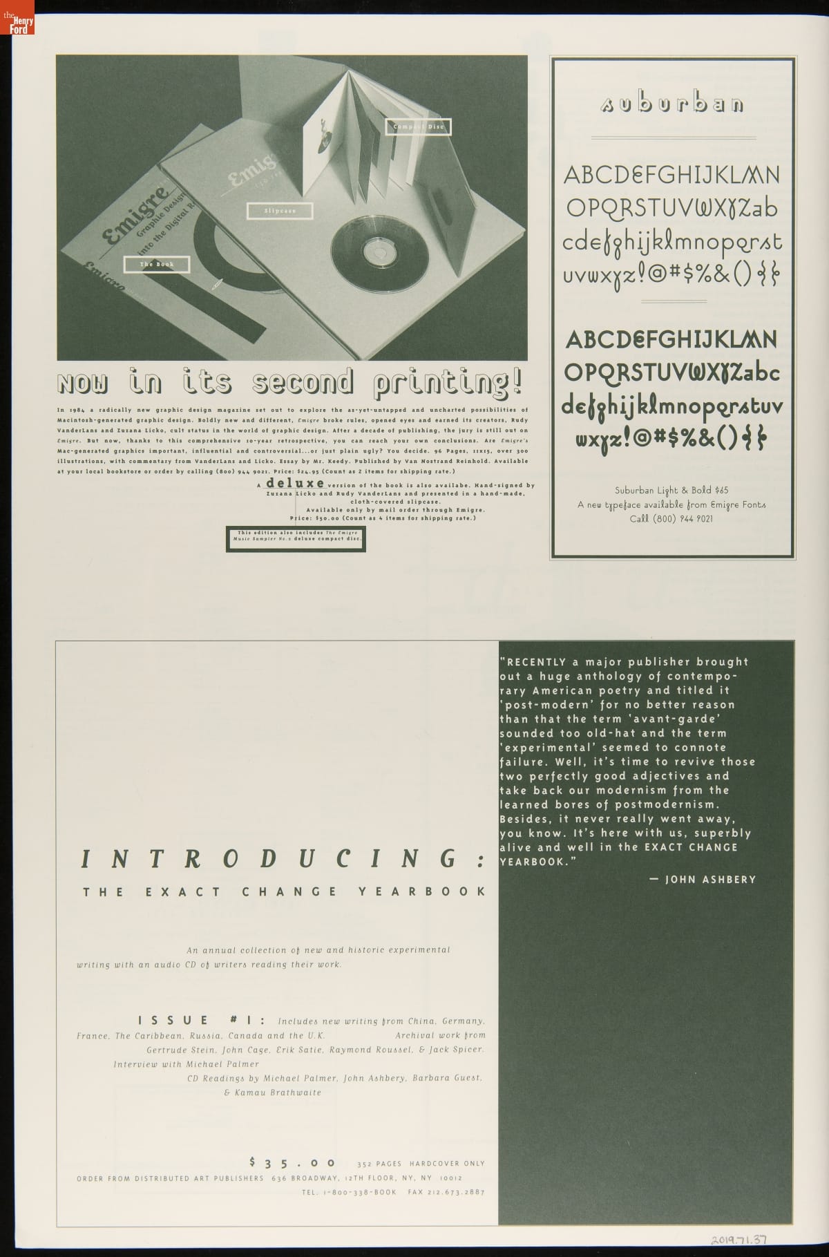 Published by Emigre Graphics, Berkeley, California. Printed at Cal Central, Sacramento, California.