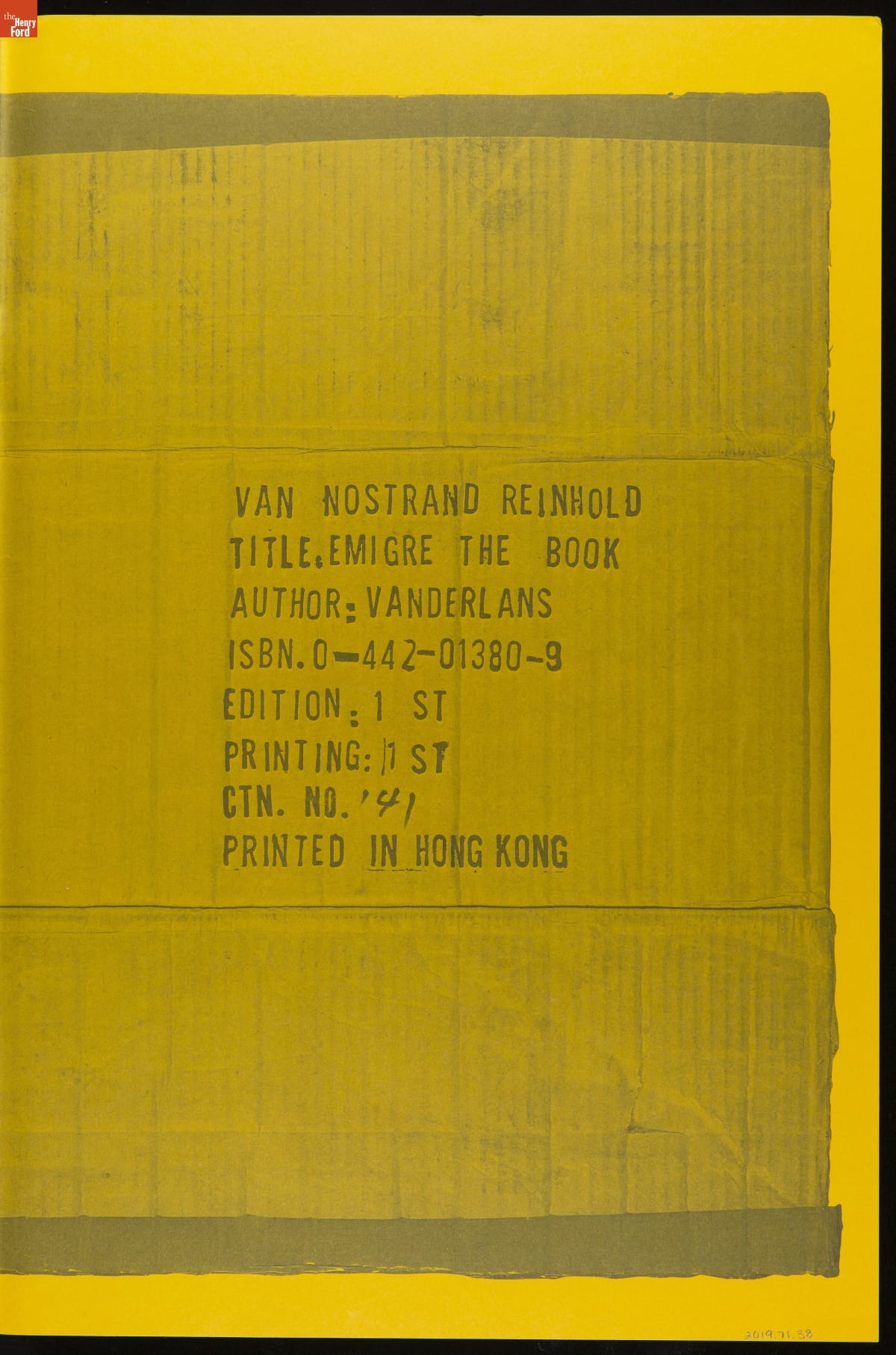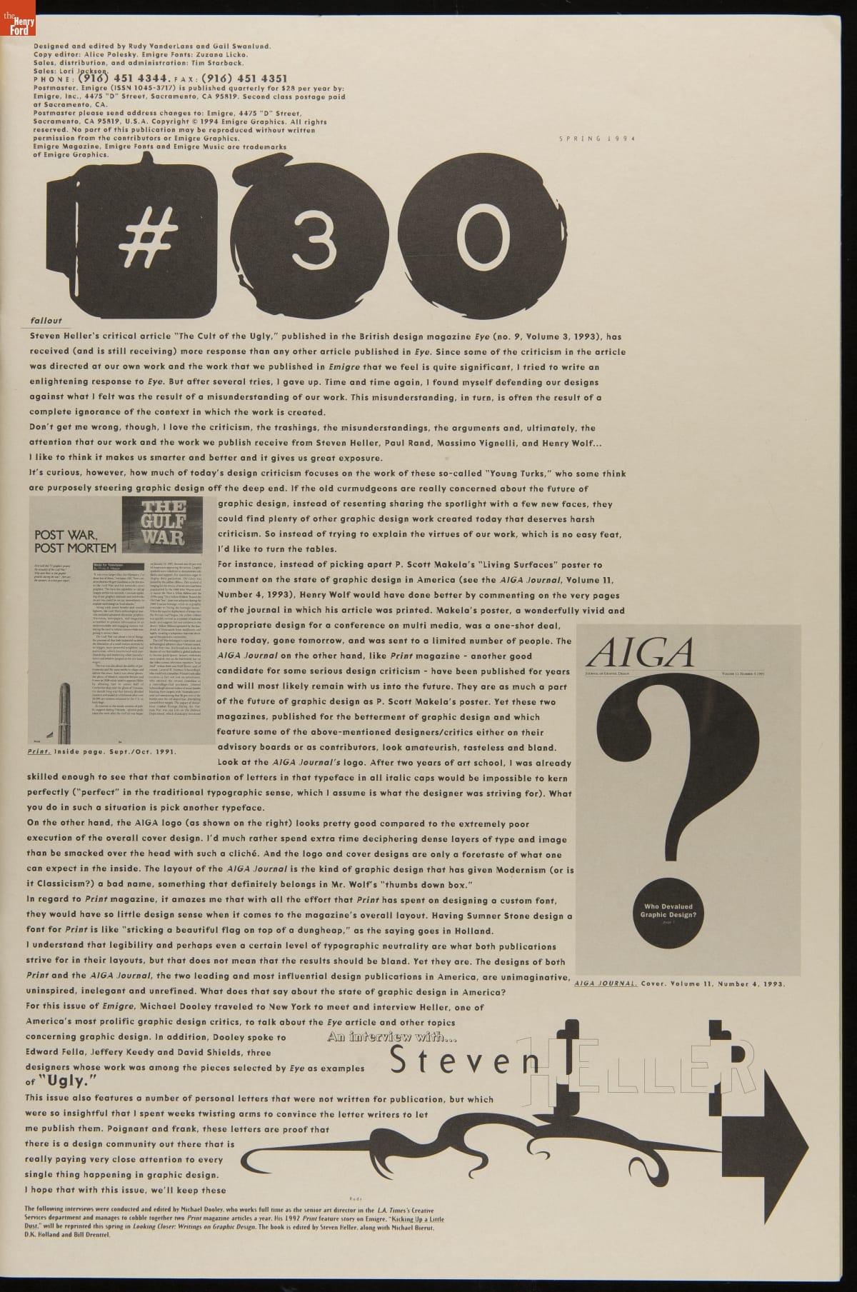 Published by Emigre Graphics, Berkeley, California. Printed at Cal Central, Sacramento, California.