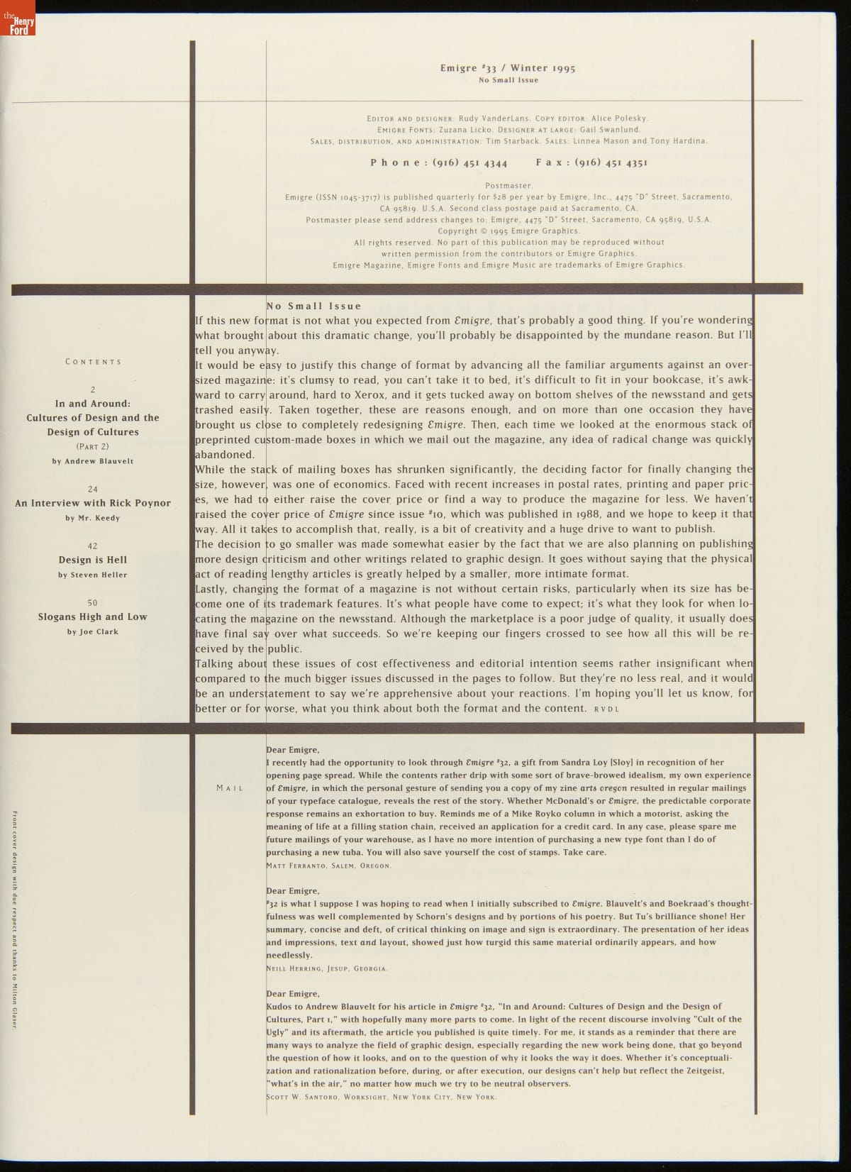 Magazine, Emigre No. 33, "No Small Issue," 1995