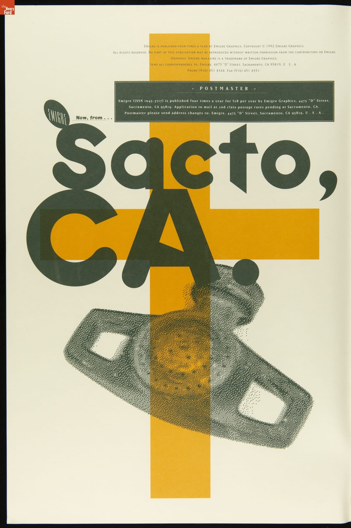 Published by Emigre Graphics, Berkeley, California. Printed at Cal Central, Sacramento, California.