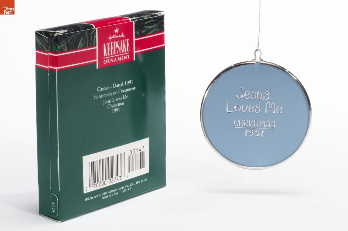 Hallmark / KEEPSAKE / ORNAMENT / Cameo - Dated 1991 / Sentiment on Ornament: / Jesus Loves Me / Christmas / 1991 / Mfd. for and (C) 1991 Hallmark Cards, Inc., K.C., MO 64141 / Made in U.S.A. QX314-7