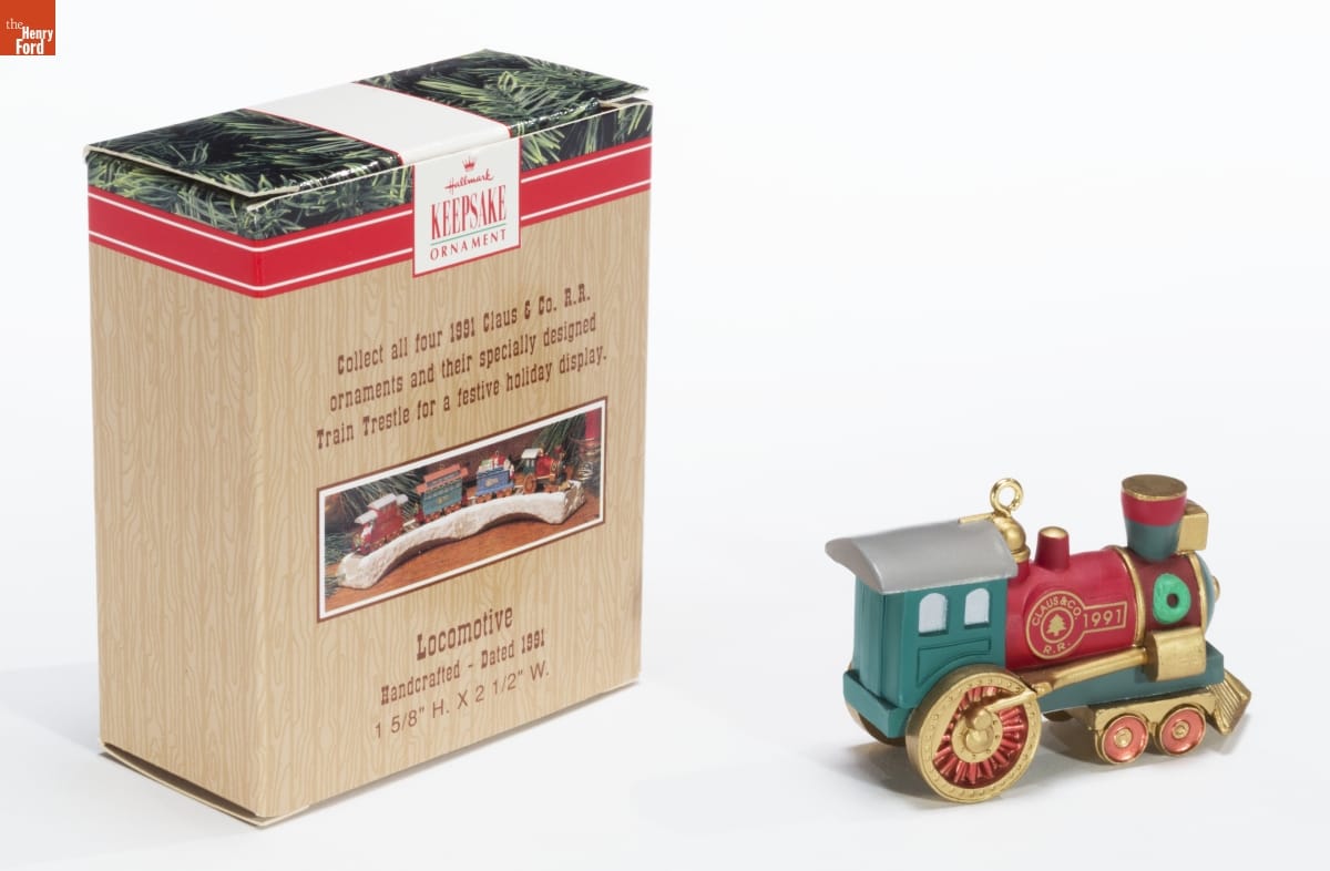 Hallmark / KEEPSAKE / ORNAMENT / Collect all four 1991 Claus & Co. R.R. / ornaments and their specially designed / Train Trestle for a festive holiday display. / Locomotive / Handcrafted - Dated 1991 / 1 5/8" H. X 2 1/2" W.
